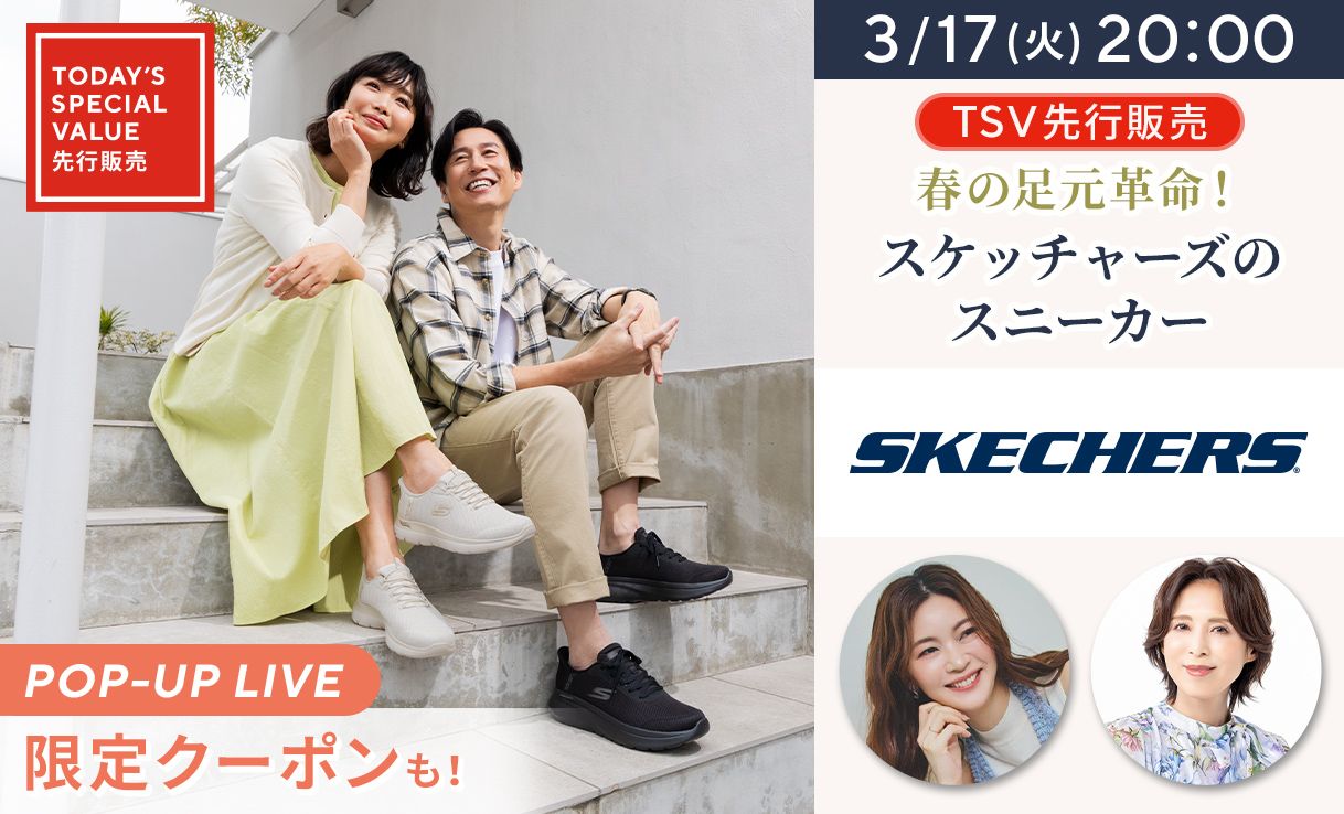 <TSV先行販売>ハンズフリーのスリップインズでおなじみ、スケッチャーズの春モデルのスニーカーがQVCに初登場♪手を使わずに脱ぎ履き楽ちん、さらに快適な履き心地が魅力のアーチフィットシリーズをご紹介。洗濯機で洗えるから清潔さを保てるのも◎。お出かけが増える春に、必需品になること間違いなしの一足です!
