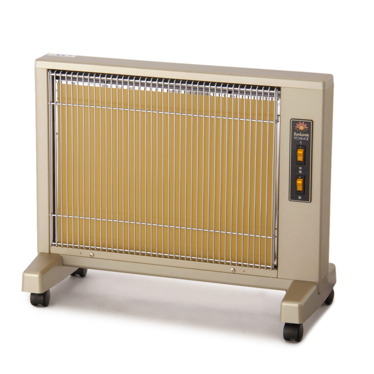 強・弱の2段階切り替え。モーターを内蔵していないため静かで、寝室や子供部屋にもおすすめです。転倒安全装置と過熱防止装置も装備しています。3年保証付きの日本製。キャスターも付いた完成品でのお届けです