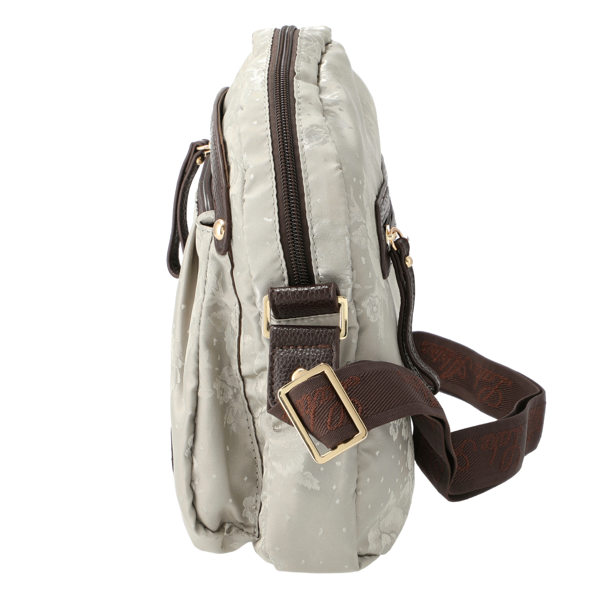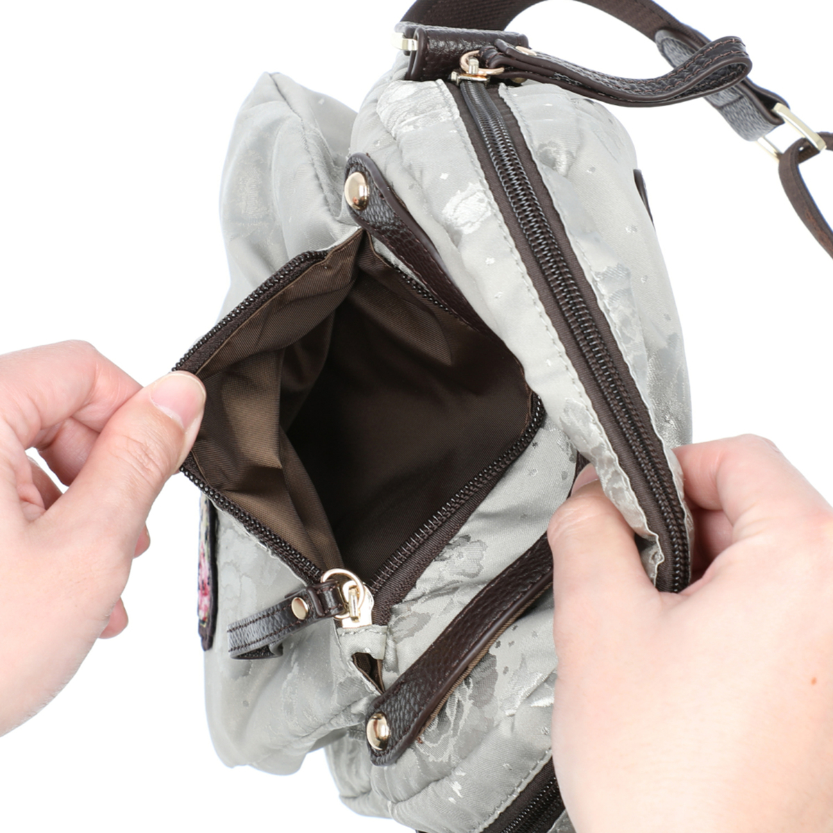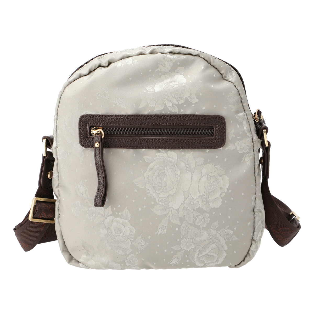 ・華やかなシェニール織から製作されたローズ柄のワッペンを前面の隅に配し、ジャガード織で表現した花柄が上品に映えるデザイン