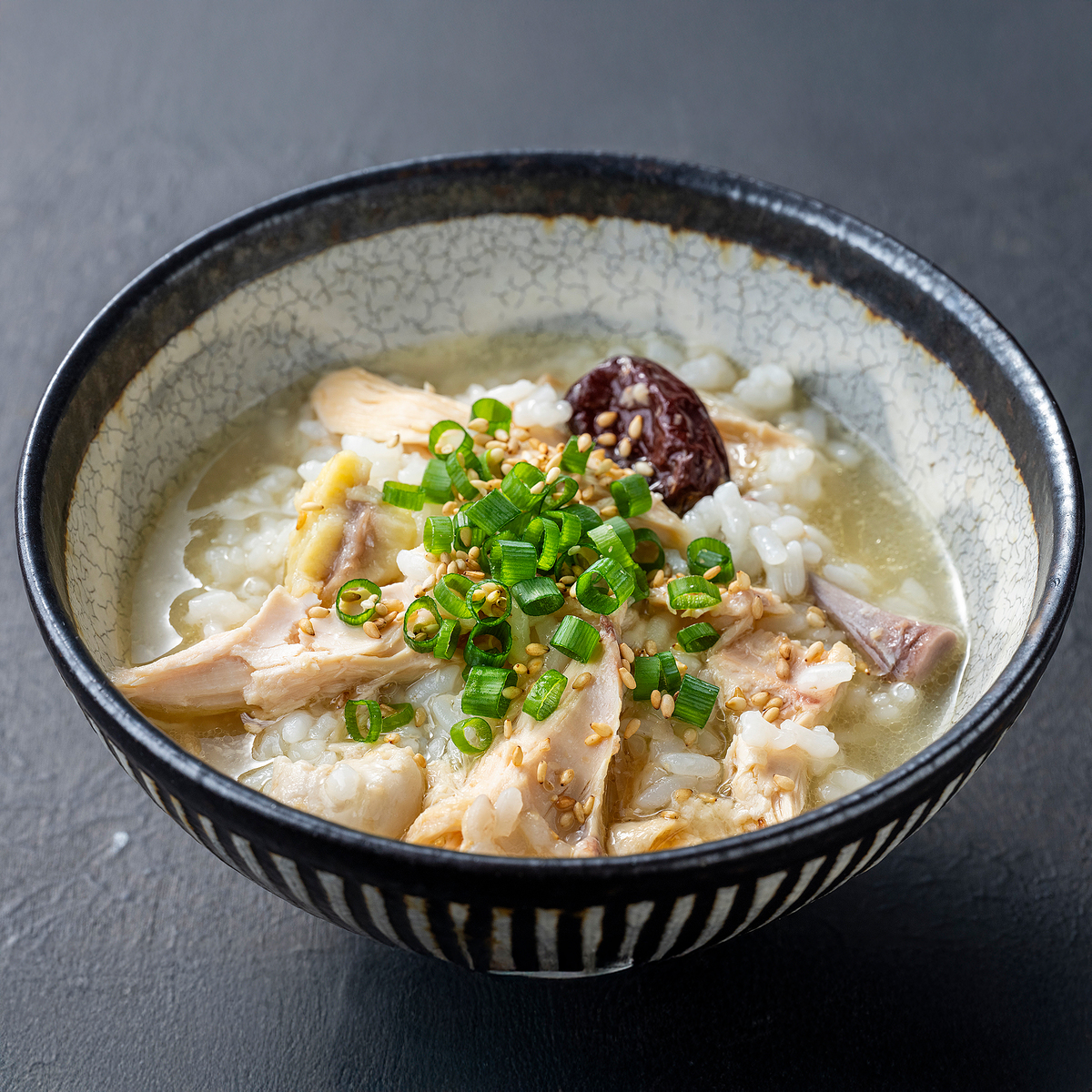 韓国宮廷料理でおなじみの"参鶏湯(サンゲタン)"がご家庭で楽しめます。冷凍ではなく生の鶏肉を使い、塩だけの味付けに。さらにもち米、うるち米、高麗人参、ニンニク、栗、ナツメが原材料です