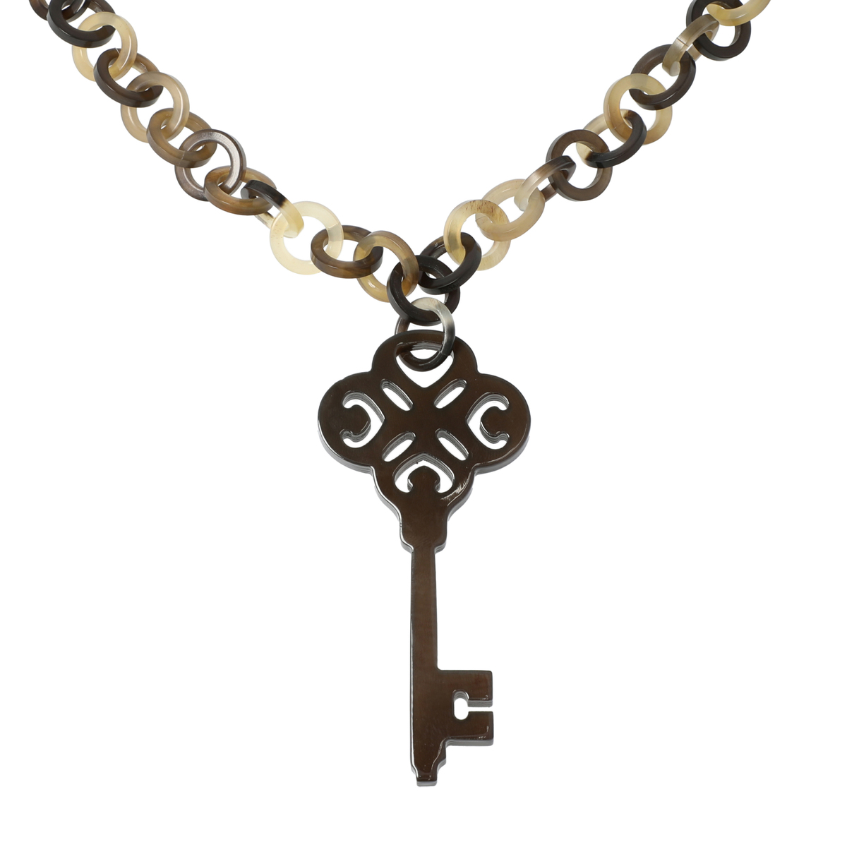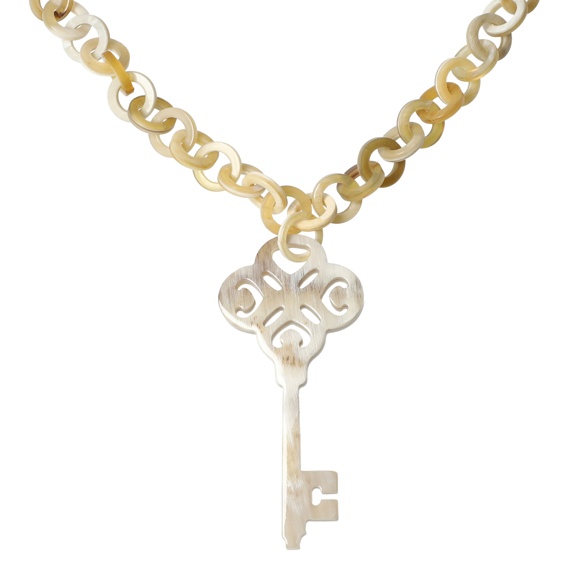 丸いパーツが連なるチェーンもモチーフもとても可愛いのに、大人がつけていて遜色ないのがとても気に入りました。牛の角、としか書かれてないのですが、水牛ではない、ということなのでしょうか?近くで見るときちんと天然素材であることが窺われていいですね。私はナチュラルをいただきました。ダークトーンな服が多いのでホワイトの方が良かったかもしれませんが、好きな色味はナチュラルでしたので、いいかな?大切に使いたいと思います。あ、とっても軽いです。