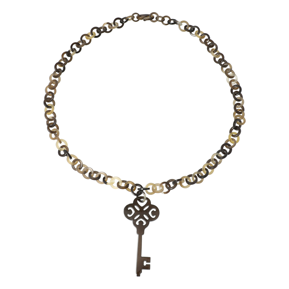 ボリューム感あるキーモチーフのトップが目を惹く、牛の角のペンダント。シルエットが美しく、神秘的な魅力を醸し出します