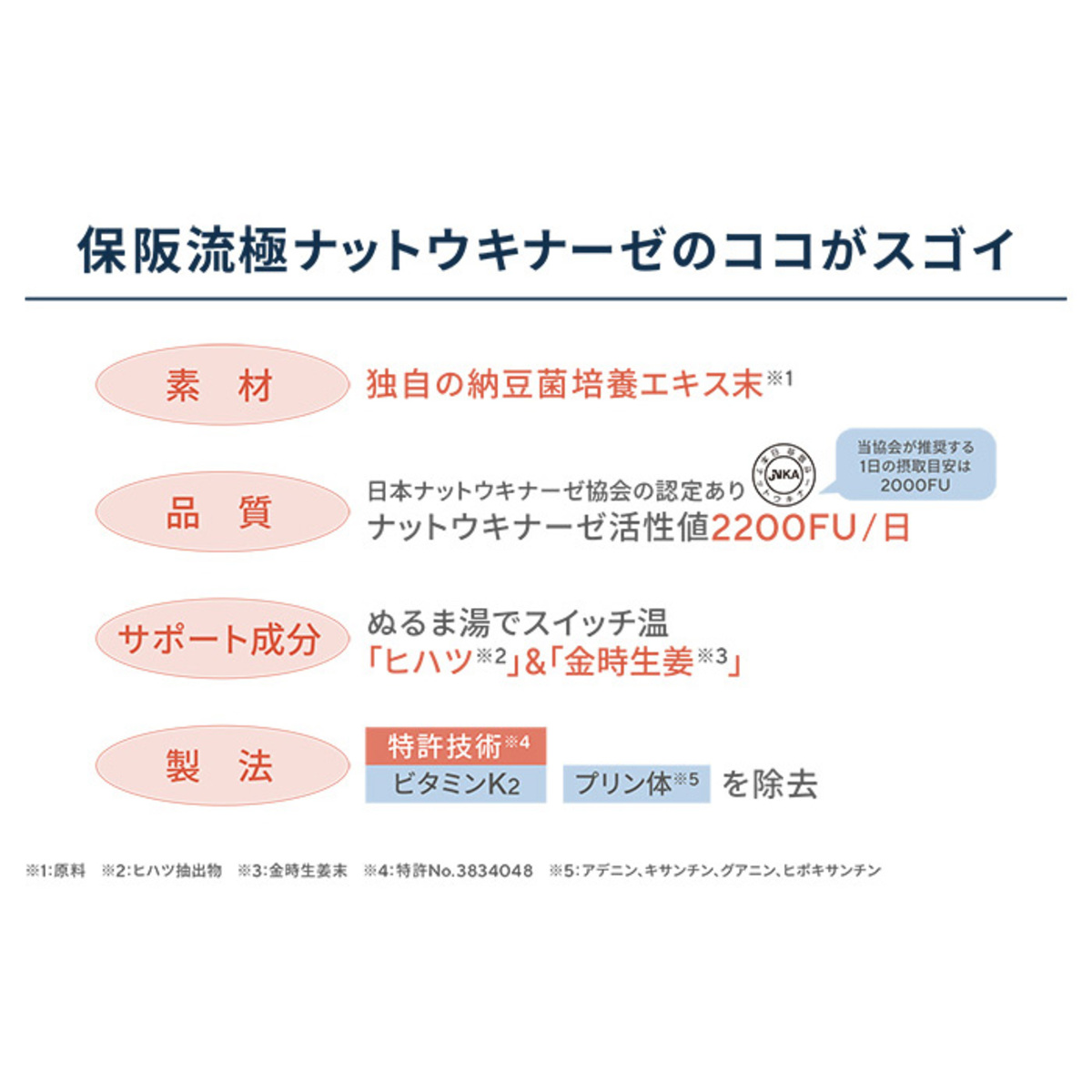 納豆菌が作り出すナットウキナーゼ。独自のナットウキナーゼ(納豆菌培養エキス末)に、ヒハツ抽出物や、金時生姜末をサポート成分として配合したサプリメントです