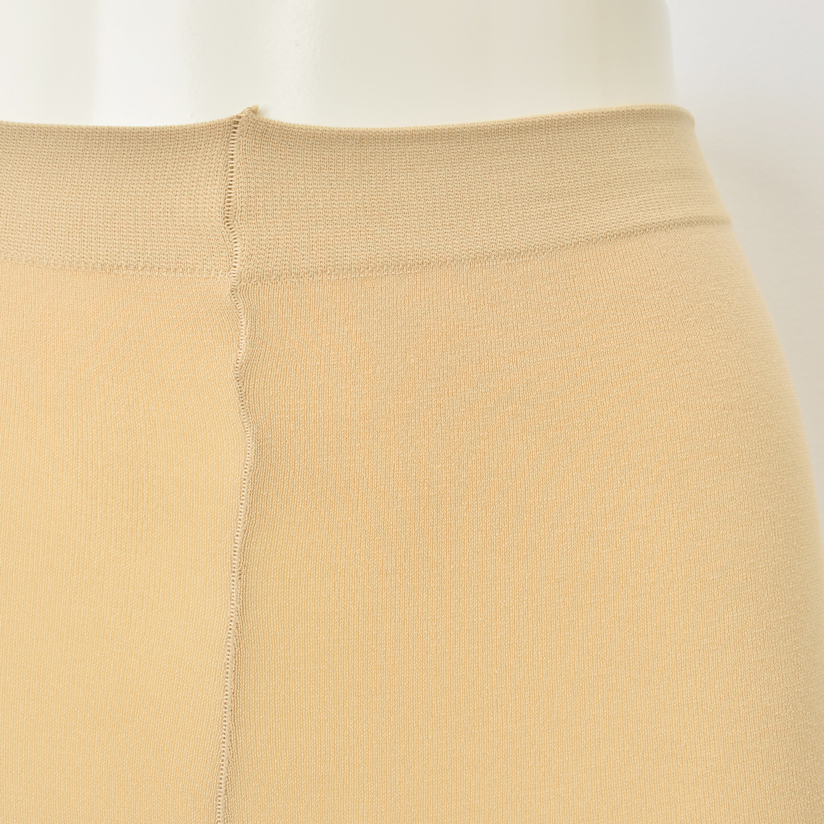 透け感のない80デニールの素材。防寒性にも優れたタイツです。一般的なタイツよりも、太もも周りを大きく編み上げることができる特殊な編機で作られた、日本製のタイツです