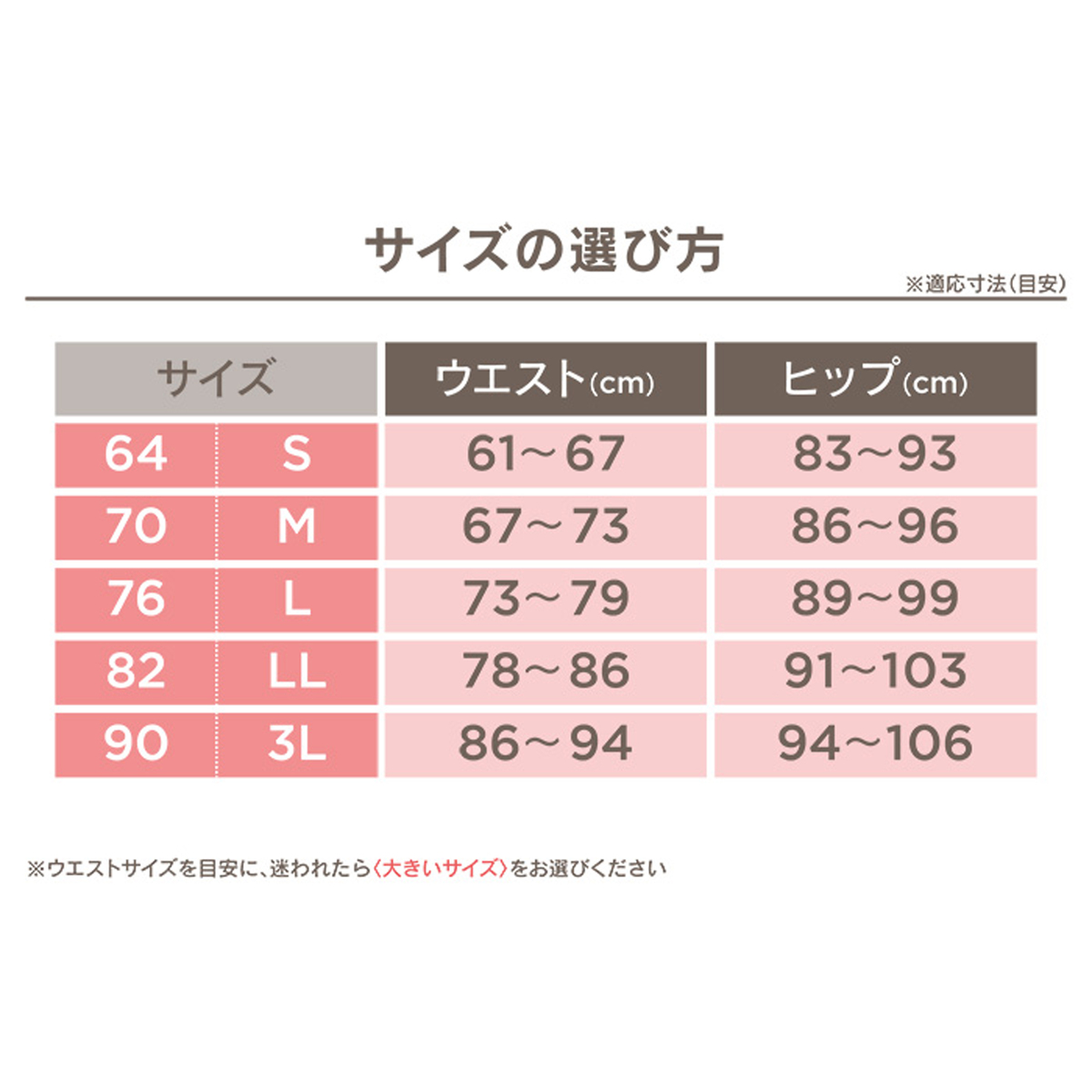 [商品寸法(ヌード寸法)cm] サイズ ウエスト ヒップ 64: (61〜67)(83〜93) 70: (67〜73)(86〜96) 76: (73〜79)(89〜99) 82: (78〜86)(91〜103) 90: (86〜94)(94〜106) [素材] ナイロン・ポリウレタン・その他 [お手入れ] 洗濯機洗い可 [注意事項] ※濃色は淡色と一緒に洗わないでください ※洗濯後はただちに干してください ※乾燥機の使用は、型くずれや縮み、生地を傷める原因となるためご使用は避けてください ※妊娠中や就寝時の着用はお控えください 【日本製】