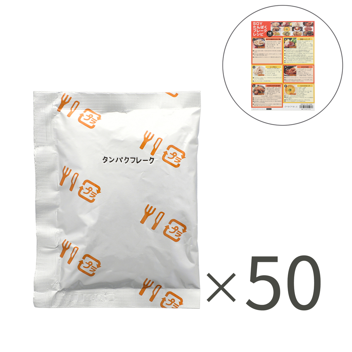 [アレルギー物質特定原材料8品目] なし [内容量] 250g(10g×25袋) [栄養成分表示(10gあたり)] エネルギー35.5kcal、たんぱく質6.34g、脂質0.36g、炭水化物2.11g、糖質1.35g、食物繊維0.76g、食塩相当量0.19g カリウム94.1mg、カルシウム54mg、鉄1.04mg、マグネシウム15.4mg、β-コングリシニン3900mg、ポリアミン1.97mg アミノ酸18種類 アルギニン473mg、リジン405mg、ヒスチジン158mg、フェニルアラニン330mg、チロシン227mg、ロイシン498mg、イソロイシン293mg、メチオニン83.6mg、バリン309mg、アラニン270mg、グリシン262mg、プロリン316mg、グルタミン酸1200mg、セリン322mg、スレオニン237mg、アスパラギン酸728mg、トリプトファン81.8mg、シスチン92.3mg [お召し上がり方] そのままでも食べられます。牛乳または豆乳にはちみつを入れて本品を入れればグラノーラ風になります。スープ、サラダ、ヨーグルト、カレー、シチュー、ミートソース、麻婆豆腐などに入れてお召し上がりください [注意事項] ※直射日光、高温多湿を避けて保存 ※開封後は必ず密閉して保存 【日本製】 [セット内容] ・すごいSOYたんぱくフレーク25袋×2 ・SOYたんぱくフレークレシピ(プレゼント) [原材料] 粒状大豆タンパク(遺伝子組み換えでない)(国内製造)