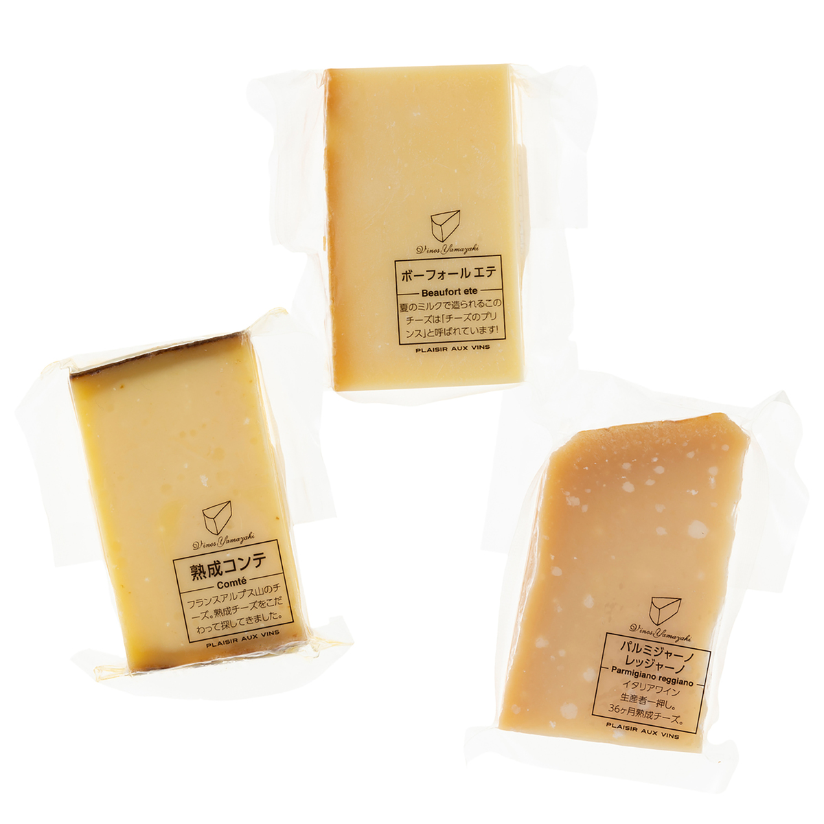 直輸入ワインの専門店「ヴィノスやまざき」の社長である、種本裕子さんがセレクトした、ワインとの相性が良いチーズの3種セットです