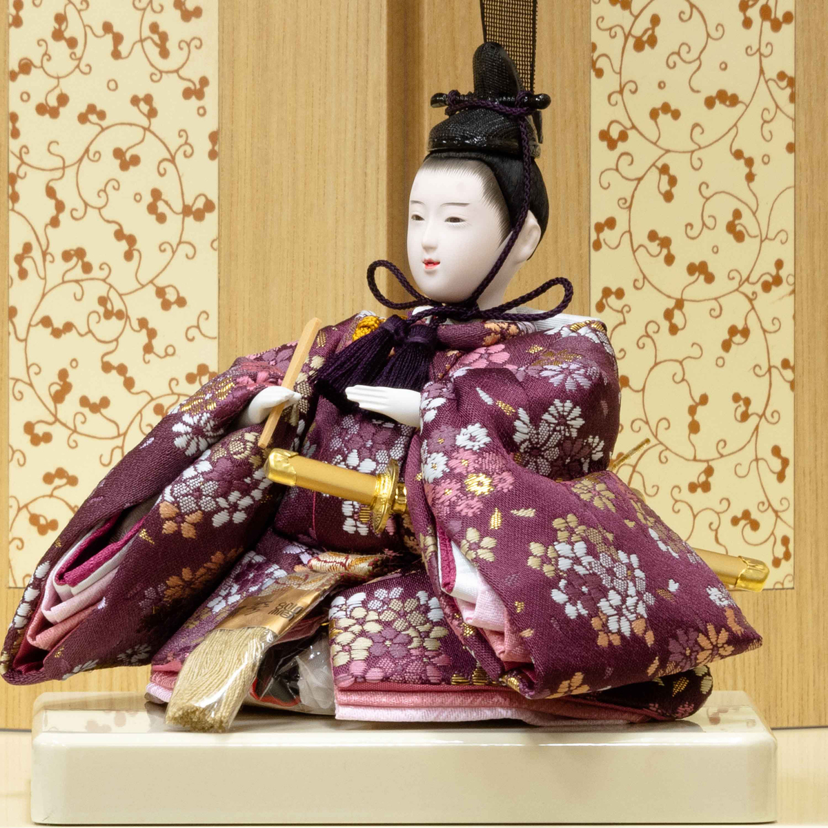 [商品内容] ・男雛(小道具:冠、冠紐、笏、飾太刀、纓) ・女雛(小道具:桧扇) ・屏風 ・飾り台 ・親王台×1組 ・紅白梅×1組 ・燭台×1組 ・前飾り×1組 ・立札 [飾りサイズ] 約間口48×奥行30×高さ41cm [重量] 本体:約5.4kg [注意事項] ※針金・クギなどを使用しているため、お取扱いには十分お気を付けください ※お子様がなめたり、誤って飲み込まないようご注意ください ※観賞用以外にはご使用しないでください ※落ちてくると危険ですので倒れない様に飾ってください ※お子様には取り扱わせないでください。金具が使ってある場合がありますのでご注意下さい ■組み立て式(組立所要時間 約20分) ■取り扱い説明を充分にご確認の上、ご使用下さい 【日本製】