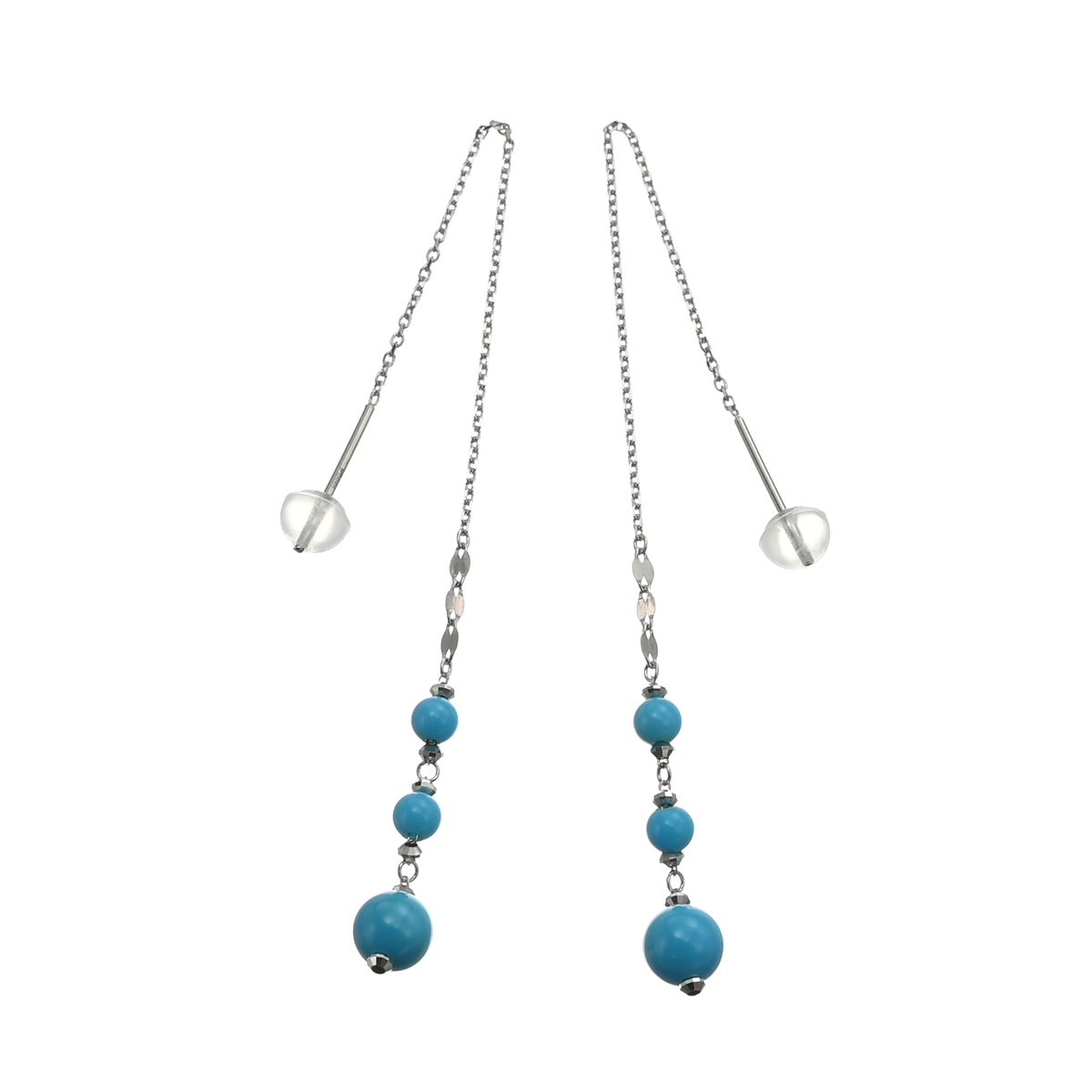 気品漂う艶めきのスリーピングビューティートルコ石を用いた、アメリカンピアス。トルコ石と煌めくチェーンが耳元で優雅に揺れ動き、お顔周りを華やかに演出します