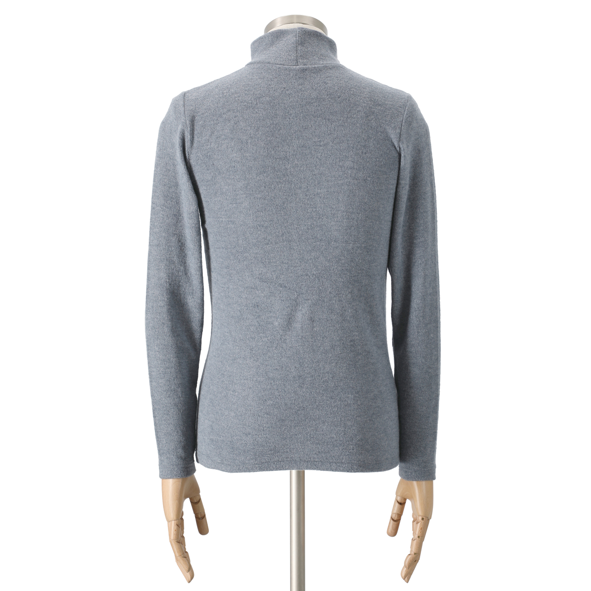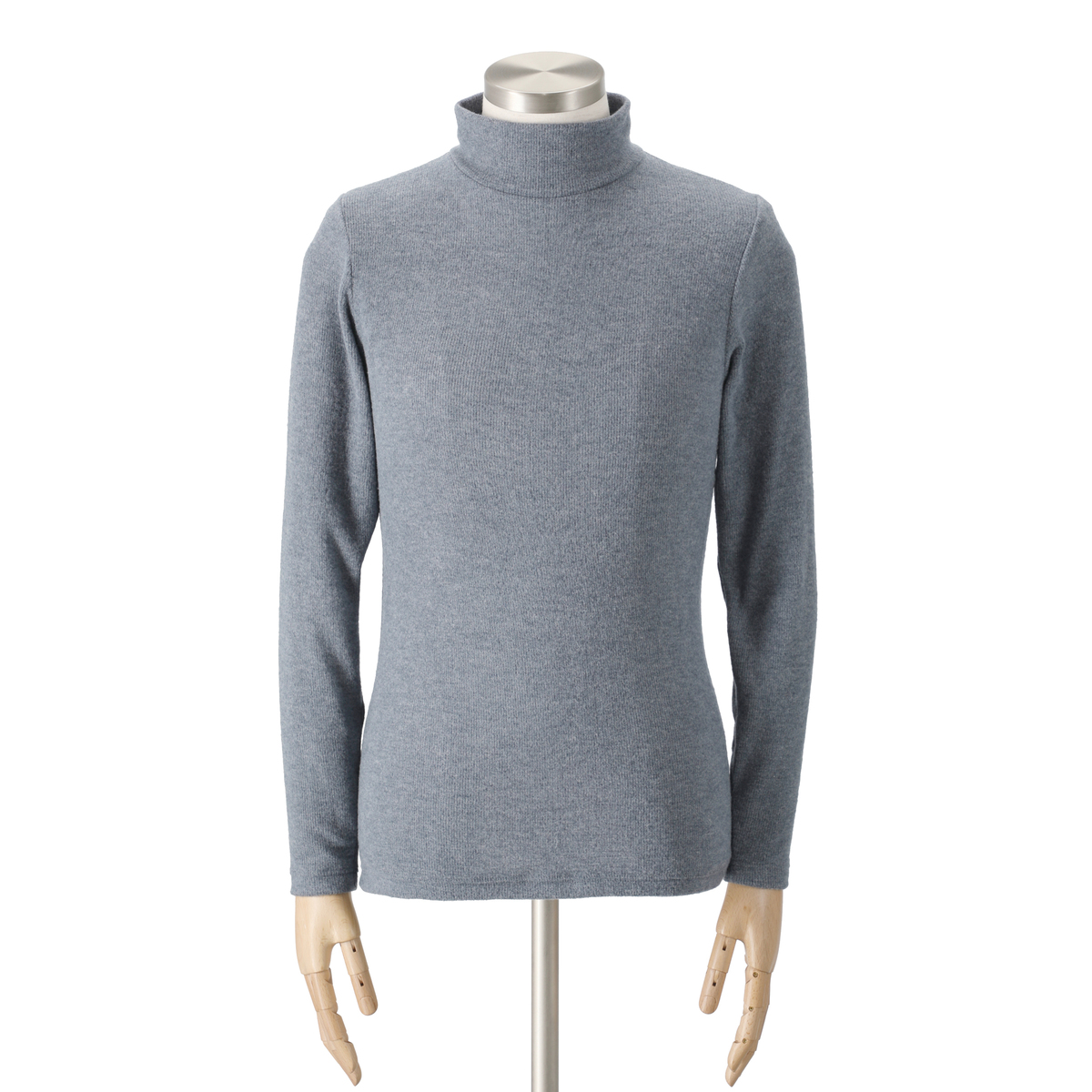 旭化成の吸湿発熱素材サーモギアを使用したハイネックインナー。袋編み2重組織の起毛素材でボリューム感が有り、起毛の毛足が空気をふんわりと抱き込んで暖かです