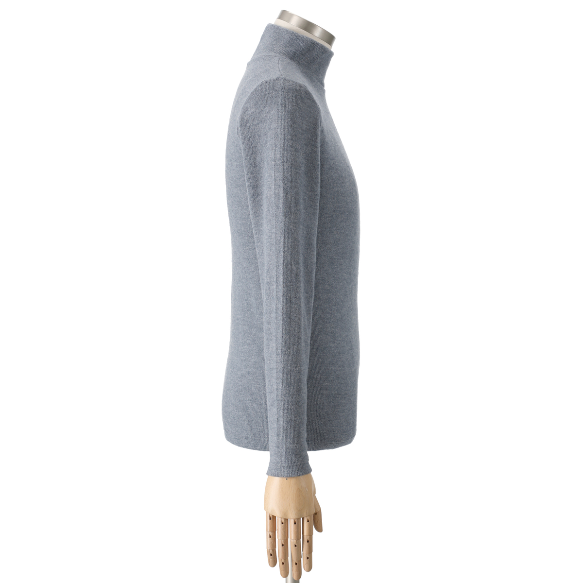 ネックラインに合わせてカットされていますので首を締めすぎず、よく伸びながらも程よいフィット感です。チクチク感を軽減していますので、ハイネックが苦手な方にもおススメです。