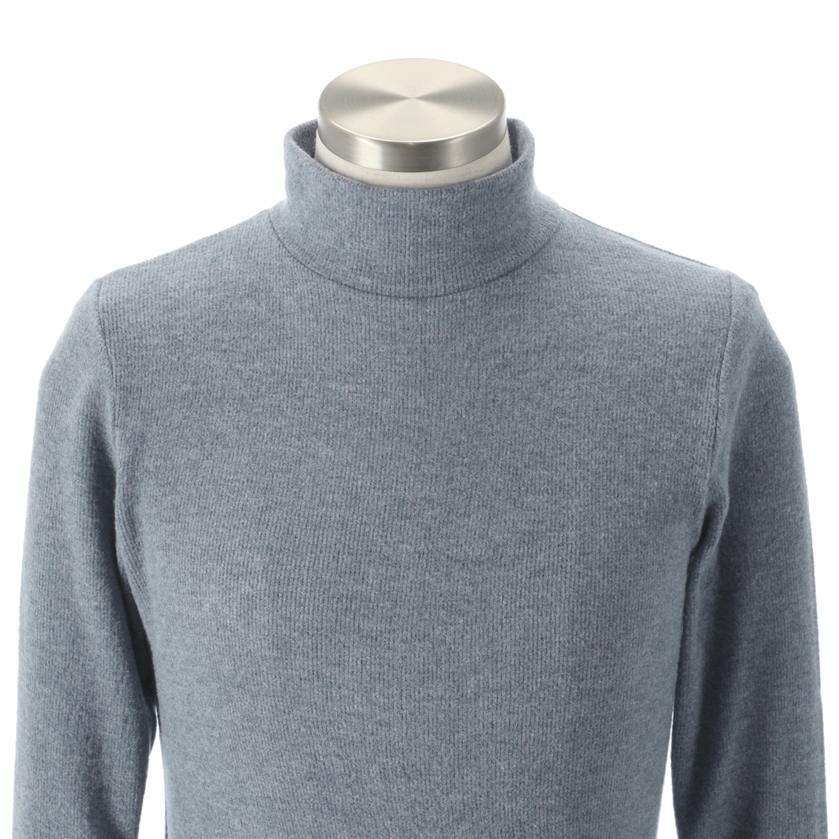 襟部分と身頃のネックラインはカーブ部分のパターンに工夫を凝らして合わせることにより、着用時につっぱりにくく、ハイネックが苦手な方にも着やすい設計になっています