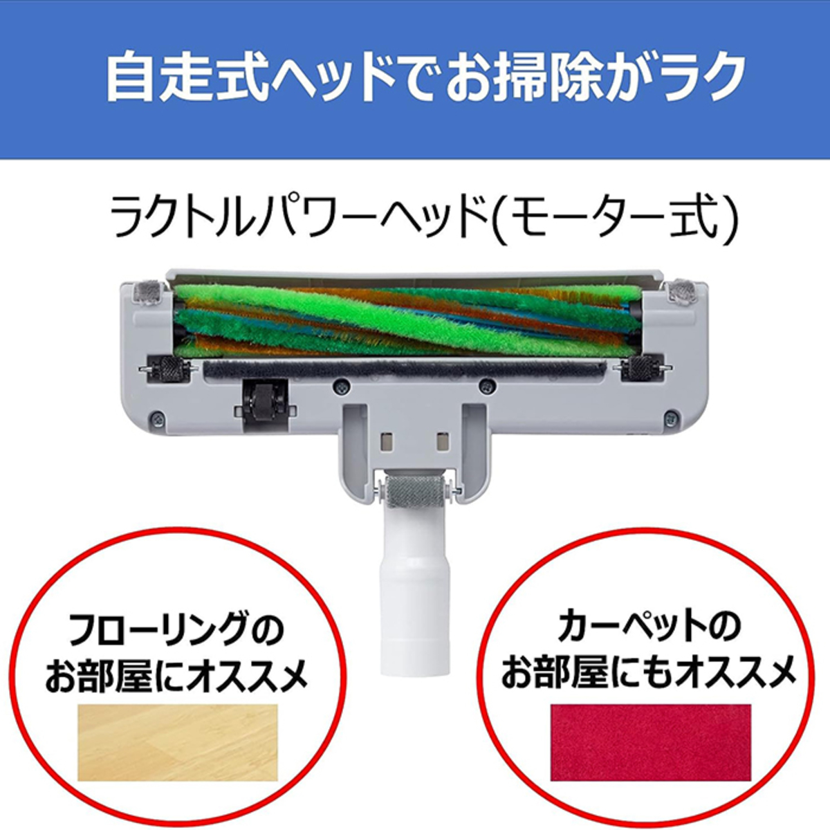吸い込み幅がワイドで、一度に広い面のお掃除が可能。スイスイ進む自走式“ラクトルパワーヘッド”の軽やかな動きで床の菌を除去します。フッ素加工ブラシ、Agブラシ、ちり落としプレートの効果で、回転ブラシへのゴミの付着を抑えます