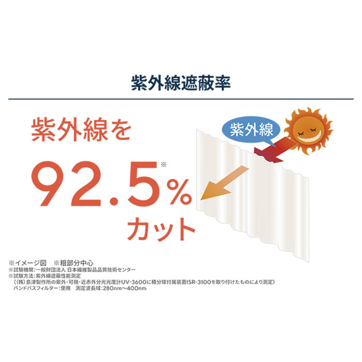 紫外線遮蔽率は、平均約94.2%です。※密部分約95.8% 粗部分中心約92.5%