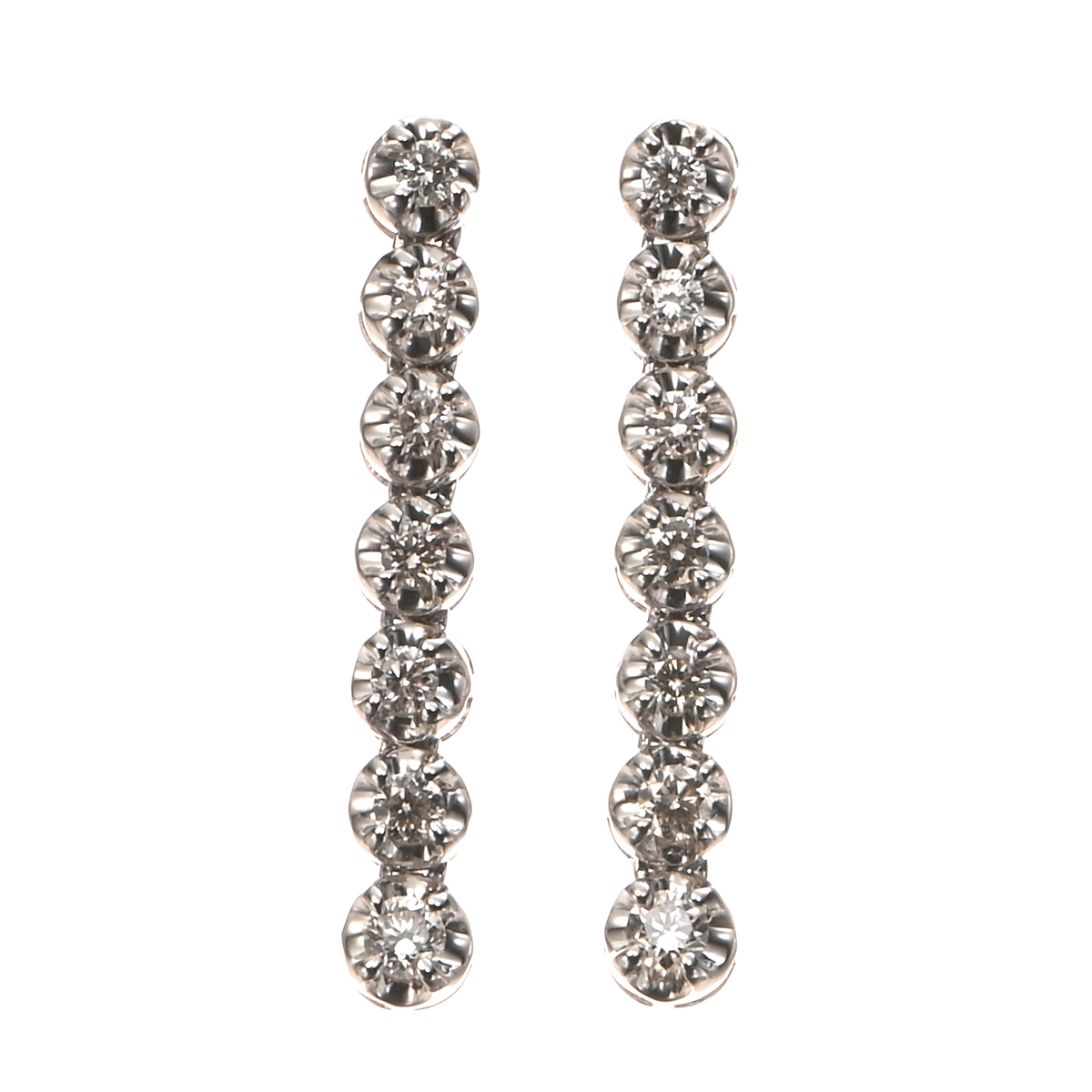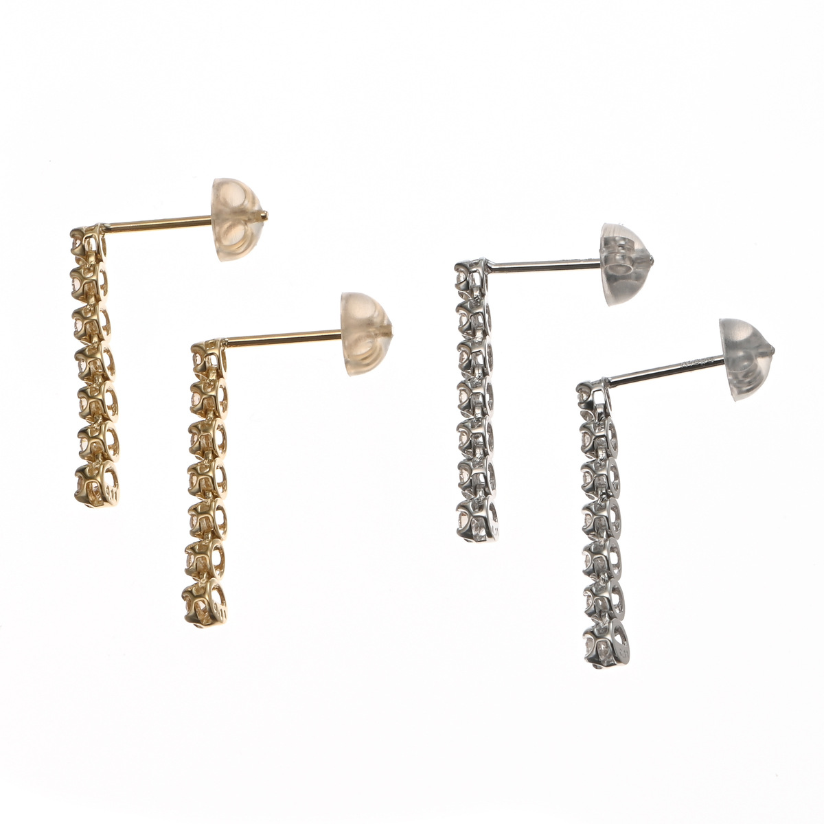 ダイヤモンドを片側7石ずつ連ねたIラインデザインのイヤリングまたはピアス。耳元でダイヤモンドが揺れ動き、お顔まわりを華やかに見せてくれます
