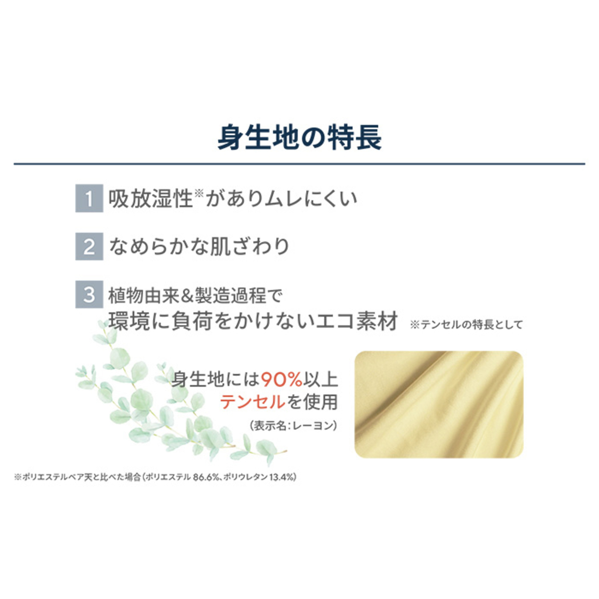 上品な光沢感となめらかな肌触りが魅力のテンセル混ベア天を使用したブラキャミです。伸縮性に優れたやわらかな素材で、バストを優しく包み込みます