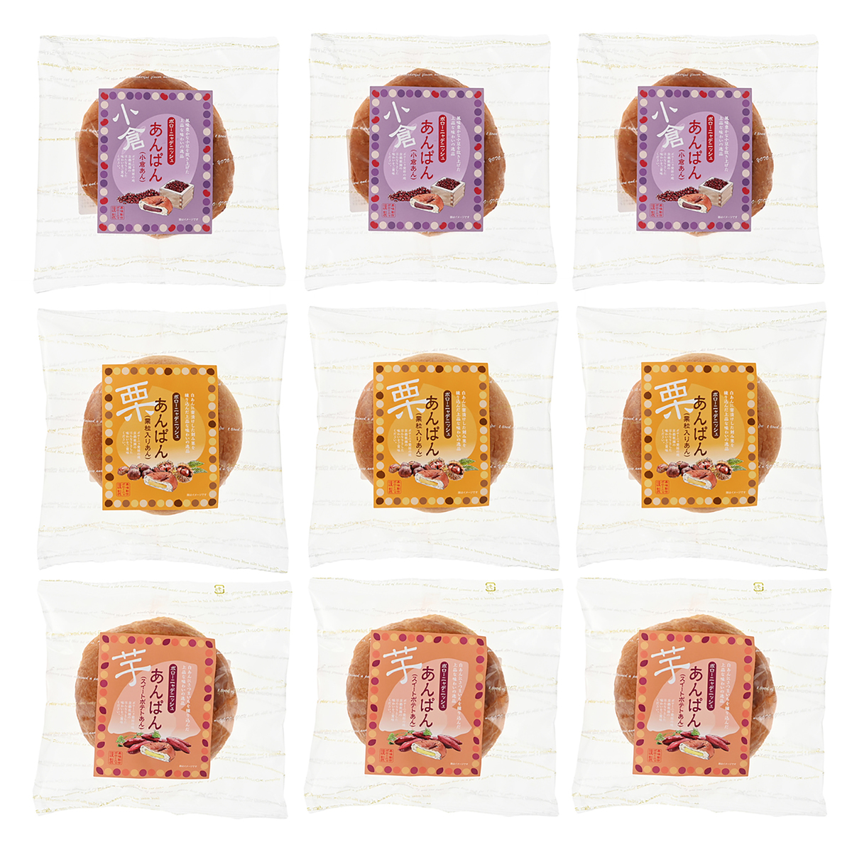 小倉あんパンには、小豆の風味を生かし粒餡に仕上げた小倉あんを使用。栗あんパンには、栗の甘露煮の食感を生かし、ダイスカットにした粒栗を白生餡に加えた栗あんを使用。スイートポテトあんパンには、ほっくり感を生かしたさつまいもペーストに無塩バターを加え、コクのある味わいに仕上げたスイートポテトあんを使用しています