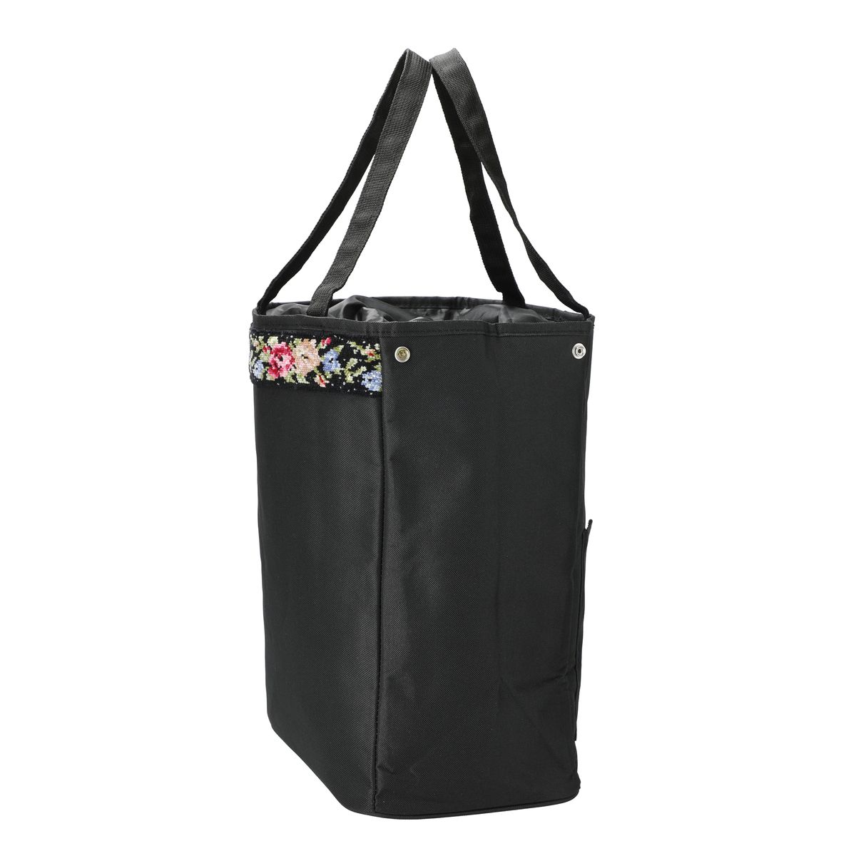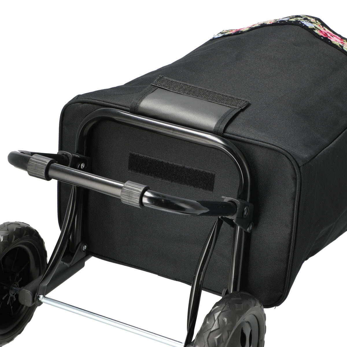 移動にも便利なショッピングカートです。二輪可動式のタイヤで安定感があり、とてもスムーズ。移動もラクにしていただけます。バッグ本体には花柄のシェニール織りのテープをあしらい、華やかなアクセントを添えました