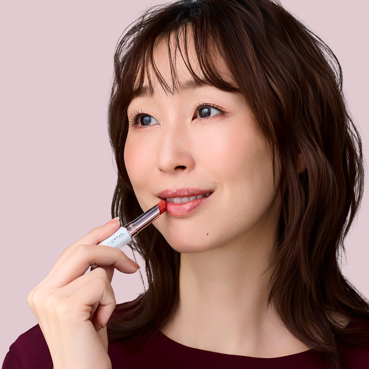 ベニバナから抽出した色素成分、ベニバナ赤を配合*2。肌なじみの良い自然な色で色持ちがよく、カップなどの食器類も汚しにくいです。ほんのり色づくから、お顔の印象を若々しく健康的に見せてくれます