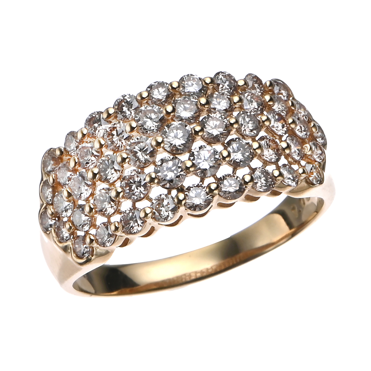 ダイヤモンド49石を5列に敷きつめた、圧倒的なボリュームと存在感。メレーサイズのダイヤモンドを丁寧に配し、ハーフエタニティリングを5本重ねたような贅沢なデザインに仕上げました