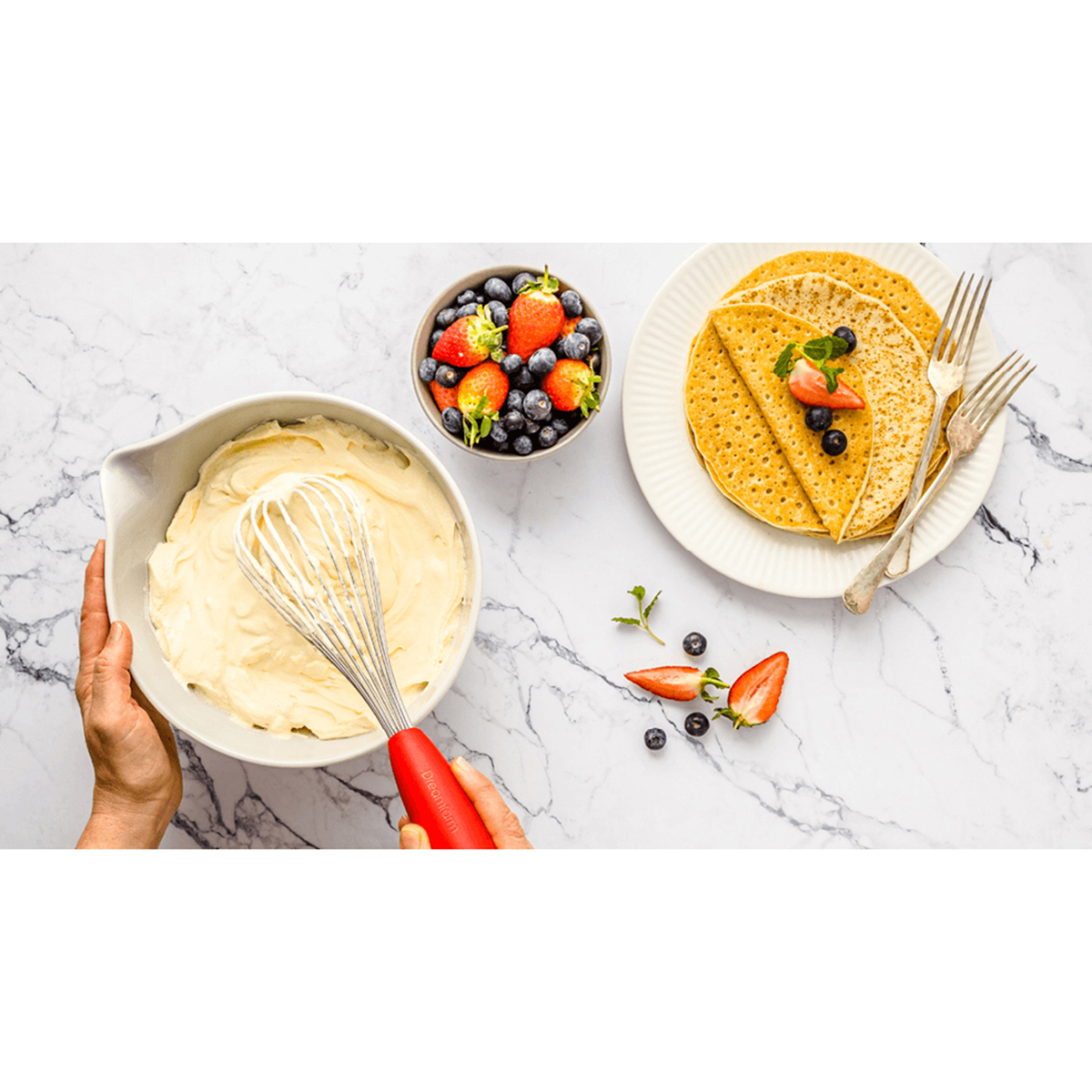 バルーンウィスクはホイップクリームの泡立てやお菓子作りに。リボンウィスクはソースやドレッシングなどのちょっとした調理に。フラットウィスクはクリームやソースをかき集めたり、省スペースで収納する際も便利です