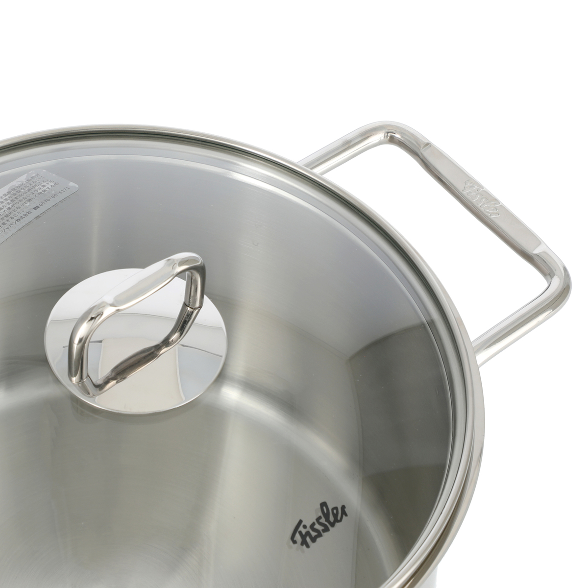[商品内容] ・本体 ・ガラスフタ [サイズ] <20cm> 約幅31×奥行22×高さ18.5cm 内径:20cm (鍋底厚6.0mm(はり底を含む)) <24cm> 約幅35×奥行26×高さ19cm 内径:24cm (鍋底厚6.5mm(はり底を含む)) [重量(約)] 20cm:1530g 24cm:2260g [満水容量] 20cm:4000ml 24cm:6100ml [材質] 本体:ステンレス鋼(クロム18%) はり底:アルミニウム、ステンレス鋼(クロム18%) ガラスフタ:強化ガラス製器具(全面物理強化) [注意事項] ※使用可:食器洗い機、オーブンレンジ ※使用不可:取っ手取外し、漂白剤、電子レンジ ※ご使用前にまず洗ってください ※フィスラーステンレス鍋は、熱まわりと保温性にとても優れていますので、火力は中火以下です。火加減に十分注意して下さい。電磁調理器(IH)を使う場合でも「中」からのスタートで、沸騰後「弱」にしてください ※この商品は調理以外にはご使用にならないでください ※取っ手やつまみの取り付けに破損やがたつき等がないか、安全を確認してから使用してください ※吹きこぼれ、煮こぼれ防止のため、適量にてご使用ください。ガスの火が消えたり、熱源故障の原因となります ※少量の油で揚げ物をする際は、熱源の揚げ物用温度調整機能は使用しないでください ※鍋をご使用中には、その場を離れないでください。空焚きでの使用は絶対におやめください。空焚きは火災や底剥がれ等の本体の変形、取っ手やつまみの破損の原因となります。使用される前に確認をしてください ※加熱した直後に鍋底を急冷しないでください。底が剥がれる原因となります ※電子レンジでは使用しないでください。電子レンジの故障や火災の原因になります ※取っ手やつまみは熱くなることがあります。火傷の危険がありますので鍋つかみや布巾等をご使用下さい。ストーブの上では、使用しないでください ※調理中や調理の直後は本体やフタが熱くなっています。火傷の危険がありますので幼児の手に触れないようにしてください ※鍋はコンロの中央に置いて安定させて使用してください ※炎が鍋の底面からはみ出さないように使用してください。取っ手等が熱くなり、焦げて破損の原因となります。また、隣接するコンロの炎が取っ手に当たらないように向きを調整してください ■IH200V迄・電気調理器 対応可 【ドイツ製】 ※塩を加える際は、沸騰したお湯に入れかき混ぜながら完全に溶かしてください。鍋の中に塩や塩分の多い食品を入れたままにしておくと腐食(白い斑点やピンホール)の原因となりますのでご注意ください。また、沸騰したお湯に塩を入れると再沸騰し、お湯が飛ぶことがあるので十分お気をつけください ※汚れたまま長時間放っておくと汚れが落ちにくくなります。使用後はよく洗って乾燥させてください ※フタを置くときにはつまみを下にしてください。熱いフタを平らなところに伏せた状態で置きますと取れなくなることがあります ※余熱調理などフタをしたまま覚ます場合、鍋本体にフタがくっつき、フタが変形してしまうことがありますので、冷める前に鍋本体とフタの接触している部分を拭き取って乾いた状態にしてください。万が一フタが離れない場合は、火にかけてください。鍋内が温まり圧力の上昇によりフタを開けることが出来ます ※IH(電磁調理器)やハロゲンヒーターは、ガスと比較して熱源が強力で熱くなるのも早いため、製造元の取扱説明書の内容に従いご使用ください。鍋を使用中には、その場を離れないようにし、空焚きや強火での使用は避けて下さい ※IHを使用の際には鍋本体と共鳴することがありますが、これは技術的な理由で起こり得る現象で、鍋本体やIHに問題があるわけではありません。鍋は常にクッキングゾーン(トッププレート)の中央に置いて使用してください。クッキングゾーンと同じか、それより大きいサイズの鍋を使用してください。小さい鍋を使用すると、稀にIHが作動しない場合があります ※IHではスイッチを入れると最大の温度設定(強など)になる場合があります。このような急加熱、過加熱は鍋底面の変形を起こす可能性があり、底面の大きな変形によりIHでの使用が出来なくなる場合があります。スイッチを入れた後、直ちに弱〜中に切り替え、徐々に調理温度を上げ、中火以下でご使用頂く事で、鍋底の変形を最小限におさえ、長くお使いいただけます ※落下等、衝撃を与えないでください。フタや鍋口部が変形すると無水調理が出来なくなることがあります。鍋を移動させる際には、必ず鍋を持ち上げて移動させてください ※鍋、コンロともに傷がつく可能性がありますので、鍋をコンロ上でひきずったりコンロに打ち付けたりしないでください