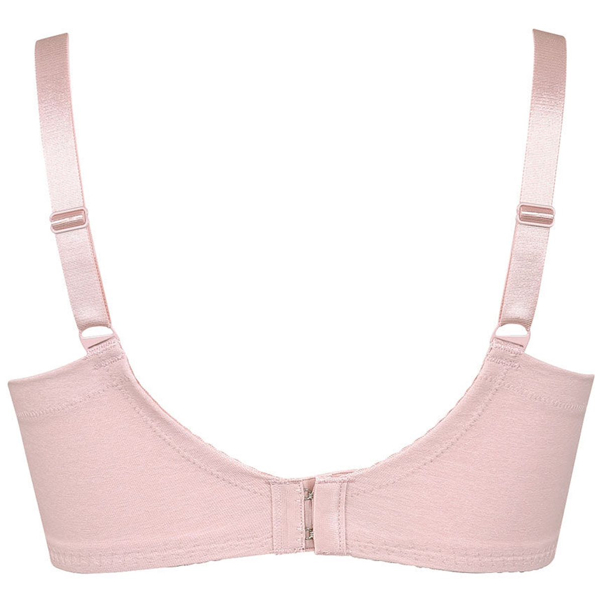 ハイバック設計&バック上辺の折り返し始末で、段差もすっきり。カップ肌側とバックは、綿混素材のソフトな肌ざわり。ストラップにも伸びのよいやわらかな素材を使うなど、細部まで着用感にこだわりました