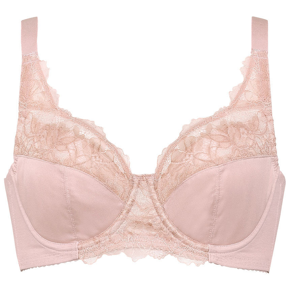 バストのはみ出しや脇流れが気になる方におすすめの、広範囲でバストをしっかり包み込むフルカップブラ。カップ上辺のストレッチレースがほどよくフィット。バストをしっかり包み込み、背中をなめらかにメイクします