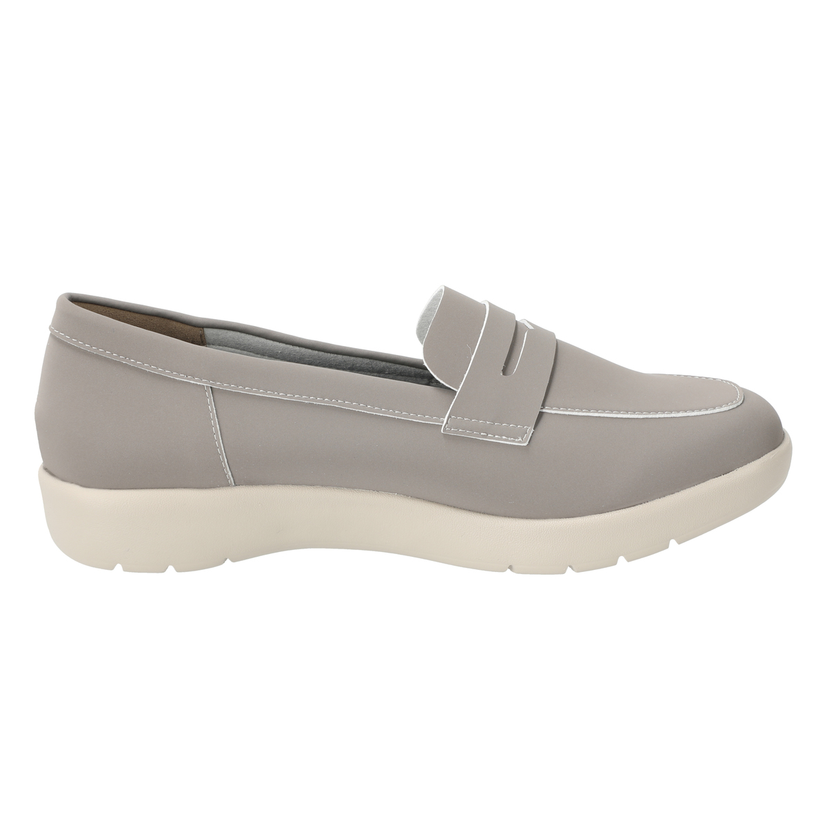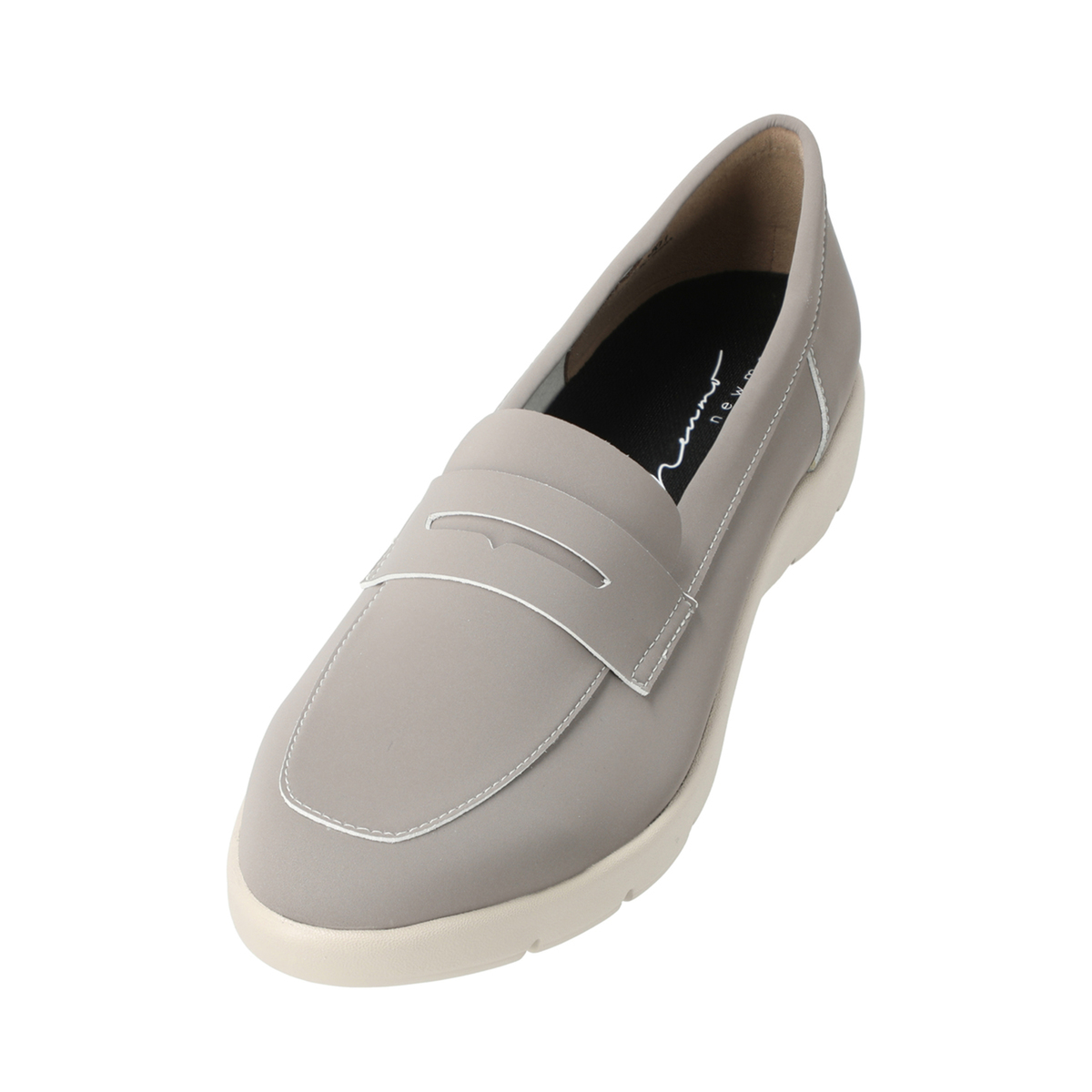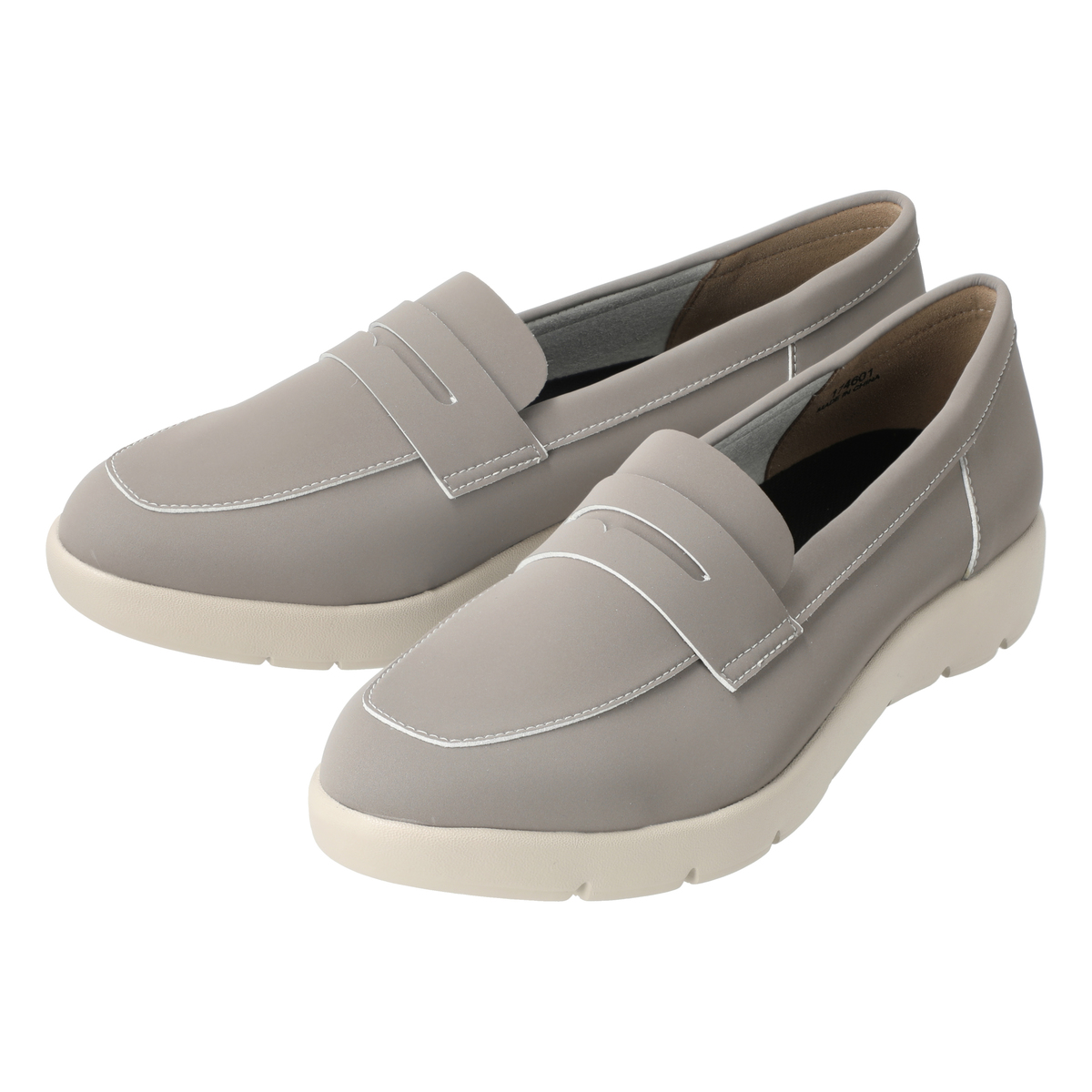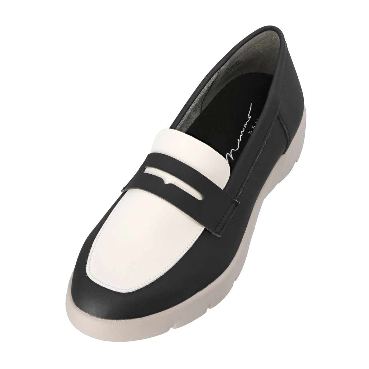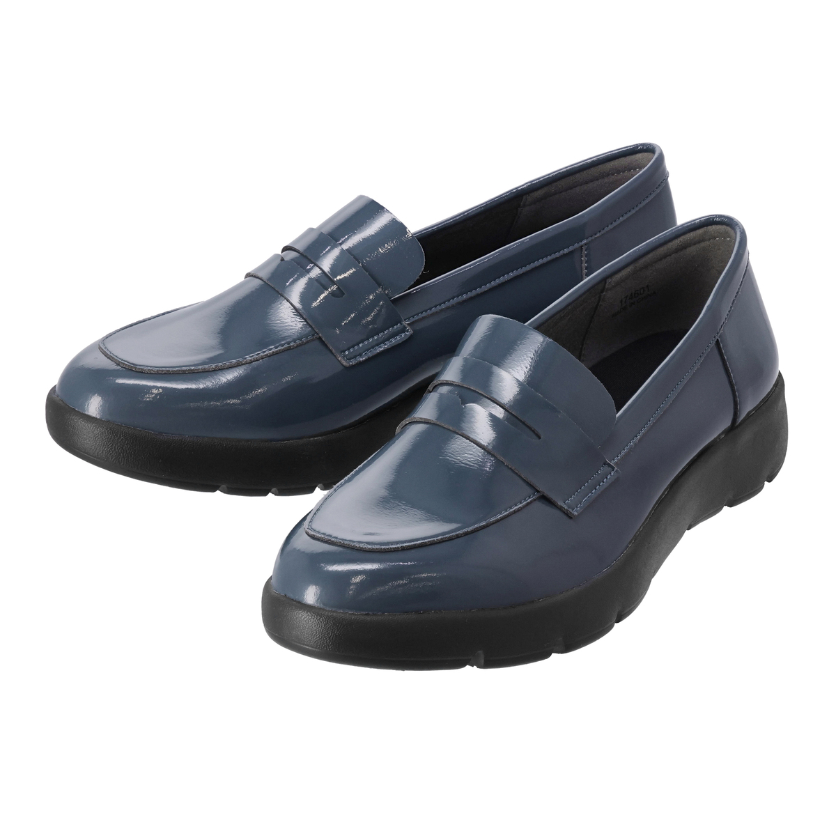 ローファーの中でもスマートな印象のコインローファーを、クラリーノ素材でスタイリッシュに仕上げました。ビジネスシーンにはもちろん、旬の大人トラッドスタイルに。厚底でありながら、片側(23cm)約150gと軽量。外反母趾やむくみやすい方、左右で足のサイズが違う方にも優しくフィットします