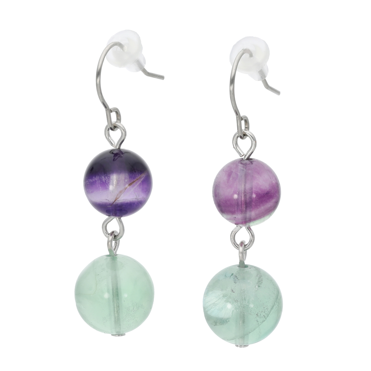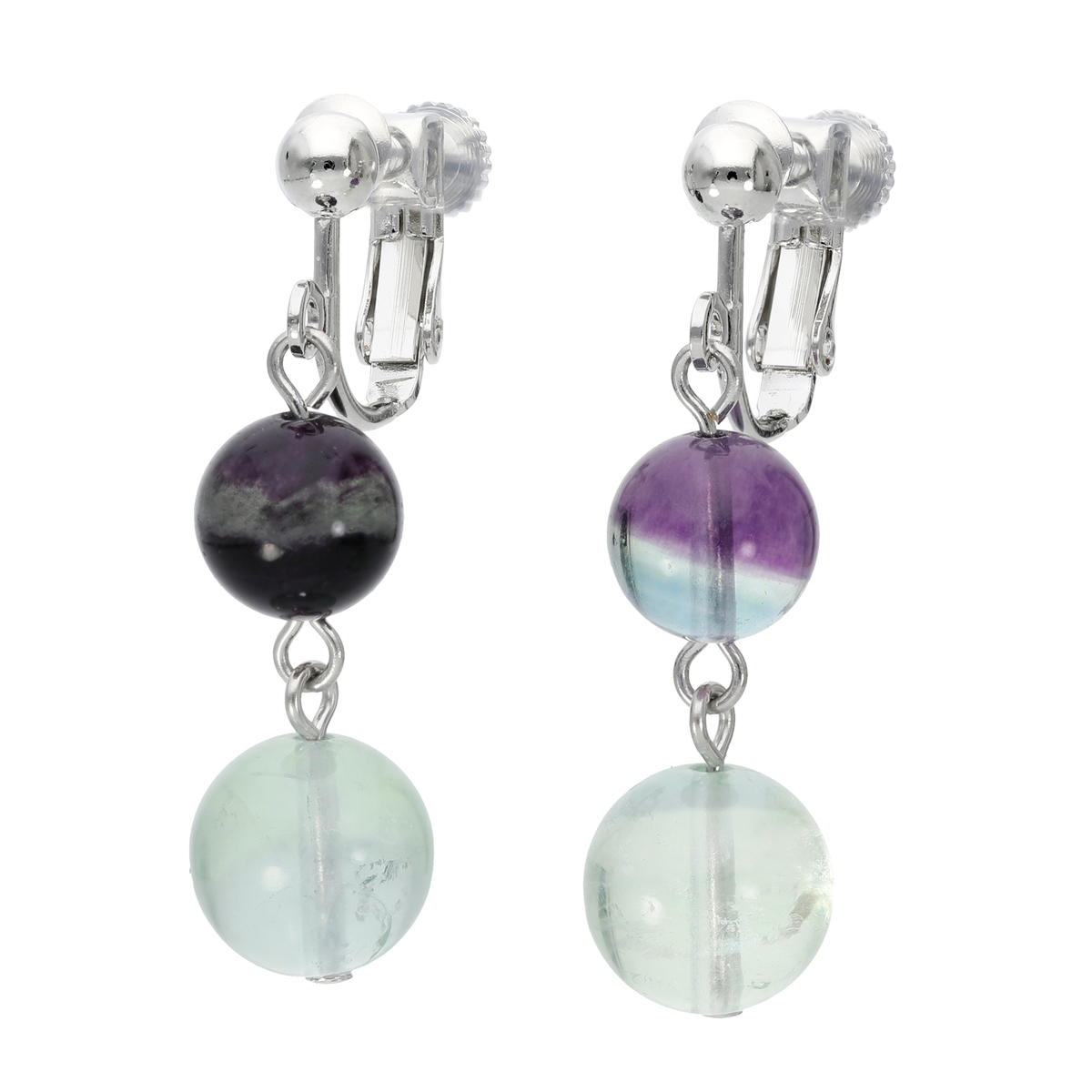 イヤリングまたはピアスは、フローライトを2珠バランスよくドロップした揺れ感のあるデザイン。それぞれ単品使いはもちろん、セット使いでいっそう華やかな装いをお楽しみいただけます