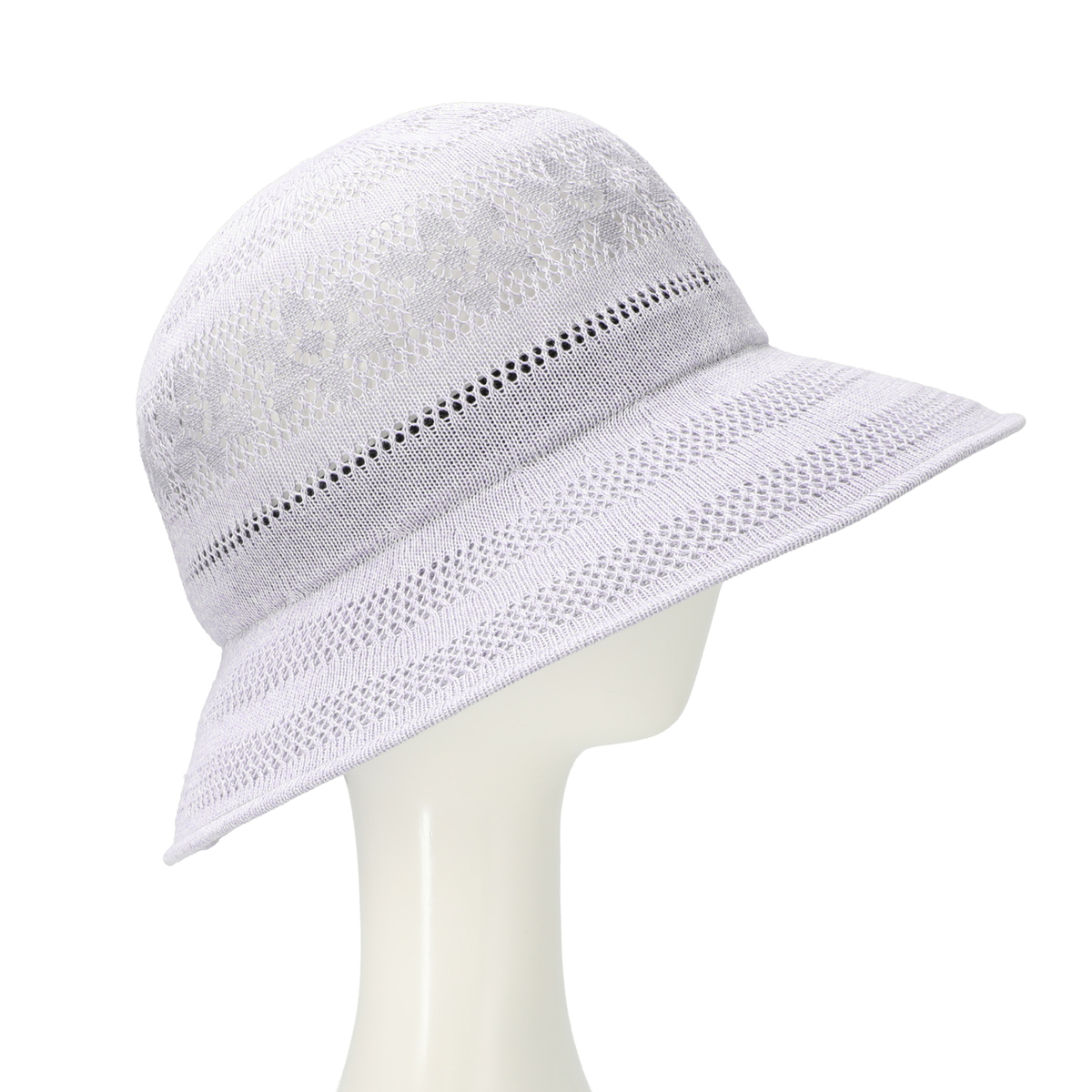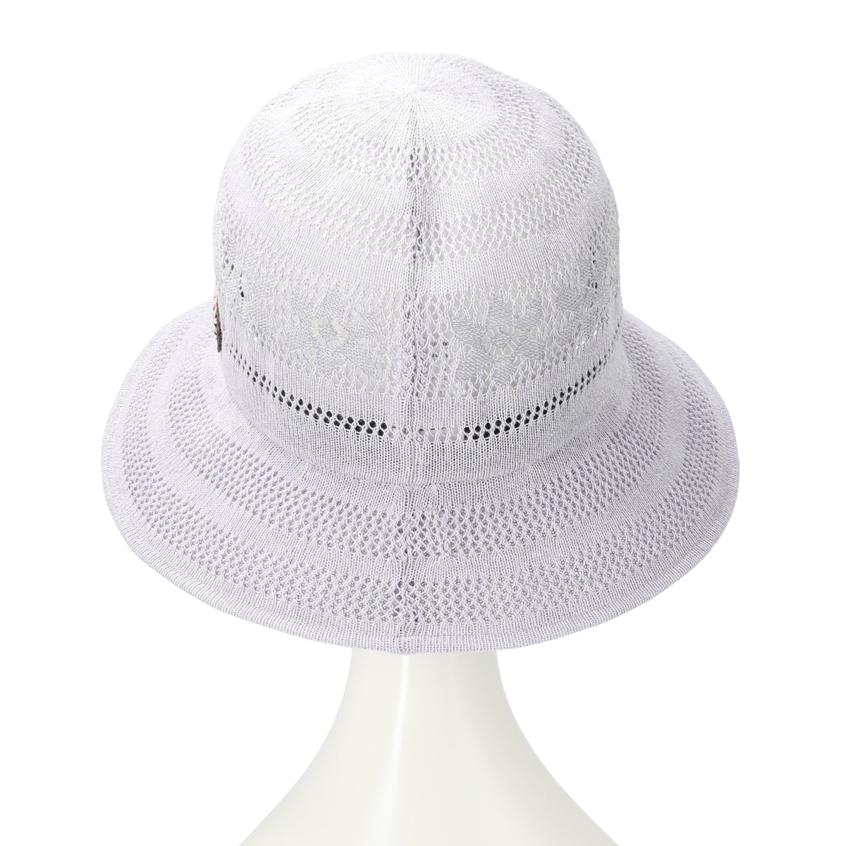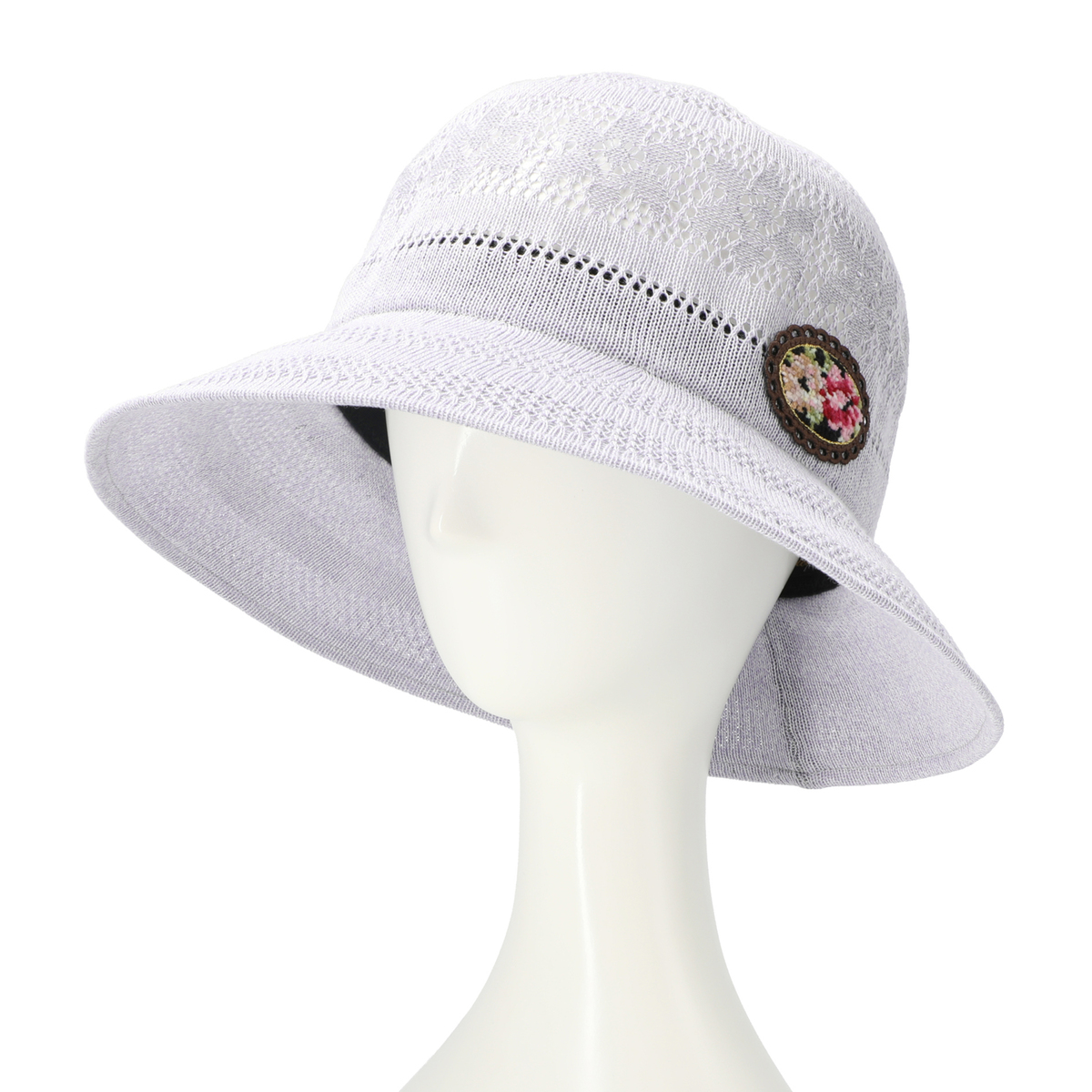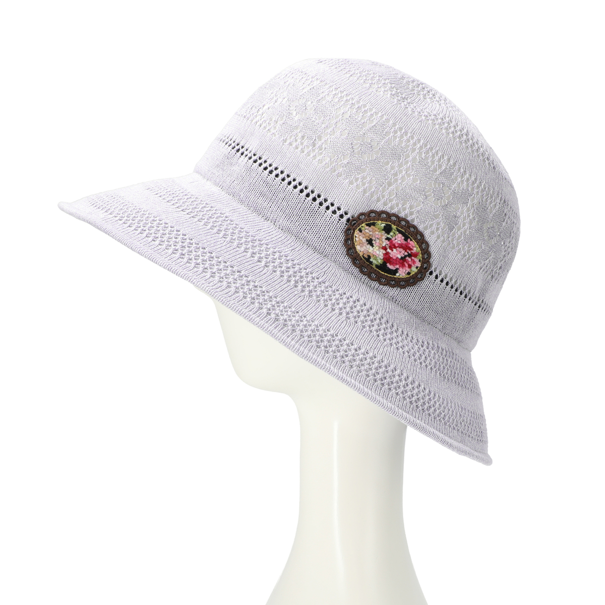 透かし編みで仕立てた、涼し気なデザインの帽子。頭部にあしらった花模様が、エレガントな印象をもたらしてくれます