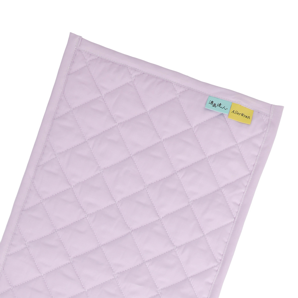 消臭、抗菌、アレル物質の抑制効果を備えたシートパッド。側生地に汗臭・加齢臭に対する消臭効果(*1)を持つ機能性素材"消臭ソムリエ"を使用。中わたの一部に部屋干し臭原因菌に対する抗菌(*2)効果、ダニ(死骸・フン)・スギ花粉アレル物質の抑制効果(*3)を持つ、シキボウの"アレルレスα"を使用しています