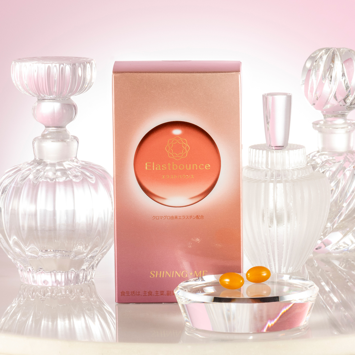 注目成分、クロマグロ由来エラスチンを主成分とした美容サプリメント。エラスチン、コラーゲン、ヒアルロン酸の3つの美容成分をバランス良く配合(*1)。デスモシン、イソデスモシン(*1)や、18種類のアミノ酸(*2)、オレイン酸、ポリフェノールも含有しています