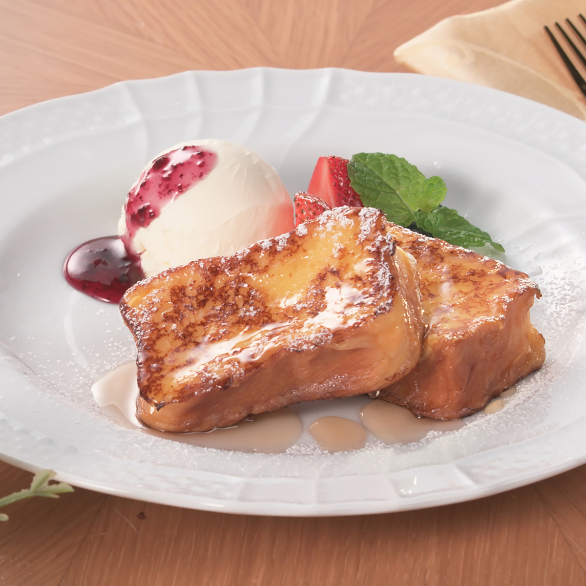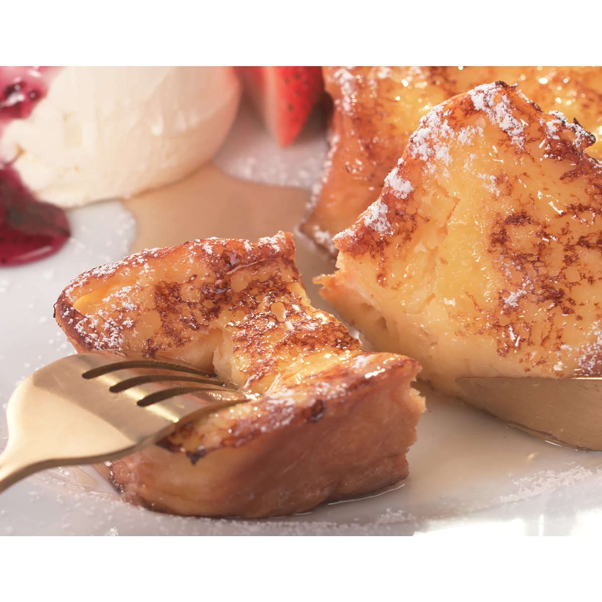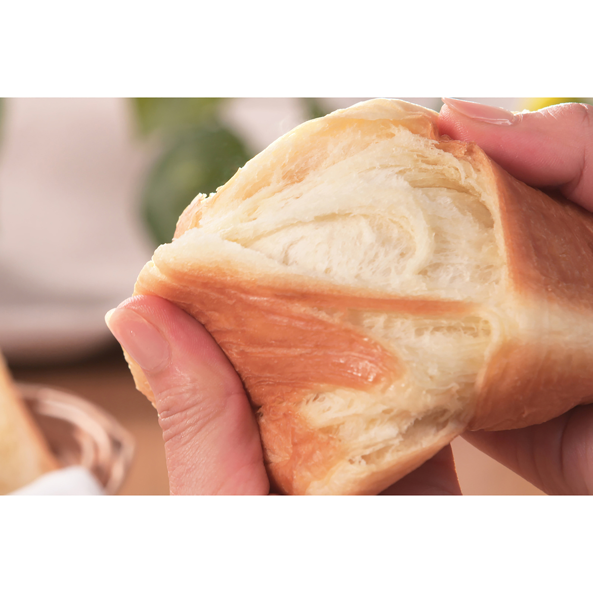 1つひとつ丁寧に作り上げたデニッシュ食パン。オリジナルの小麦粉で作った生地にオリジナルマーガリンを入れ*、職人の手作業により、きめ細かい81もの層を作り上げてからオーブンで焼きました