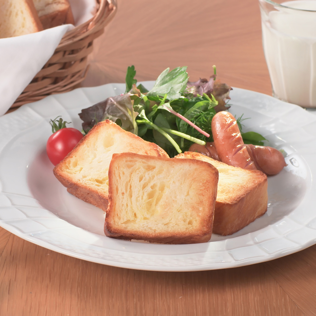 解凍するだけでお召し上がりいただけますが、冷凍状態のままトースターで焼くと、香ばしい香りが立ち込め、練り込んである油脂がジュワっと溶けだします。外側はサクッ、内側はふんわり。焼きたてのような美味しさをお楽しみいただけます