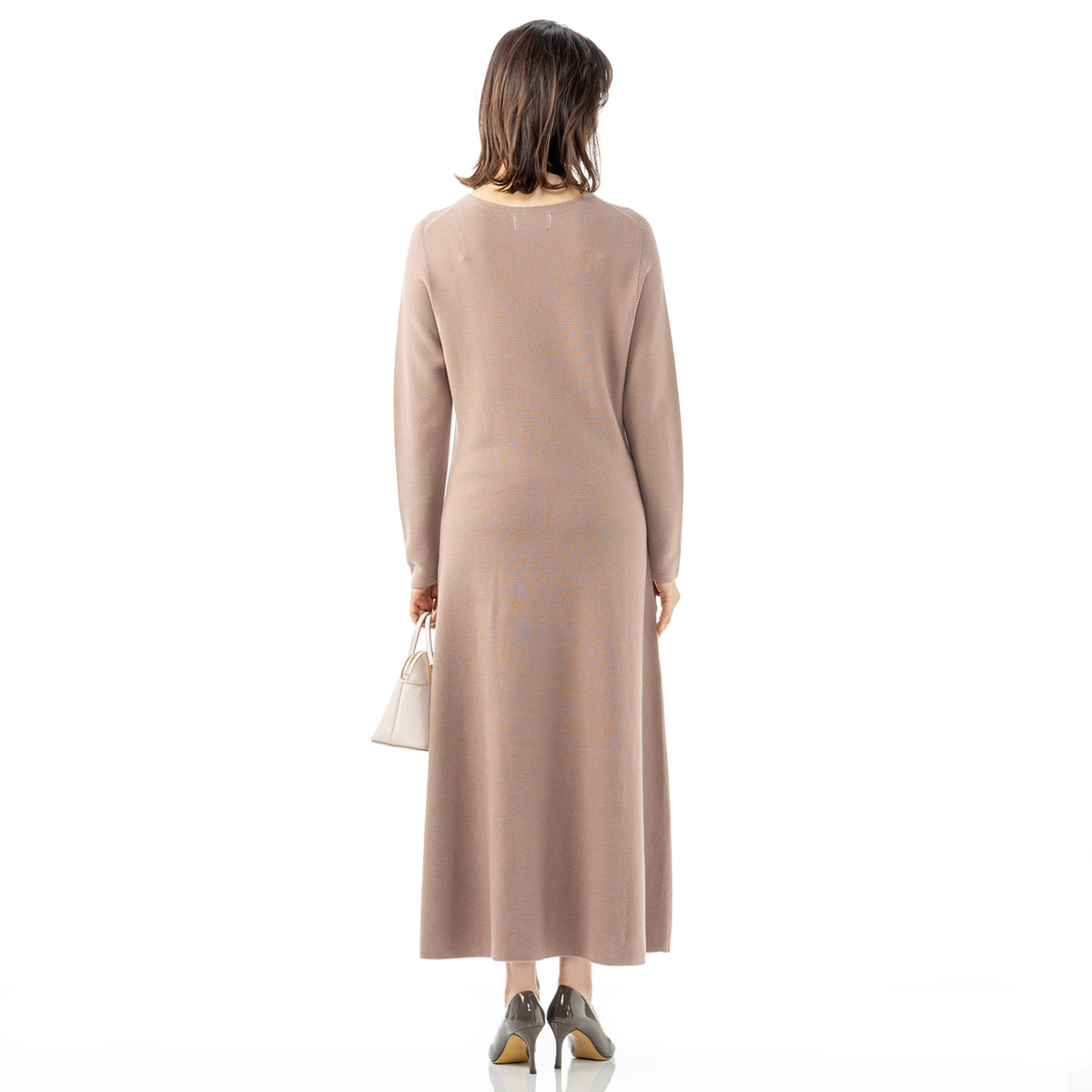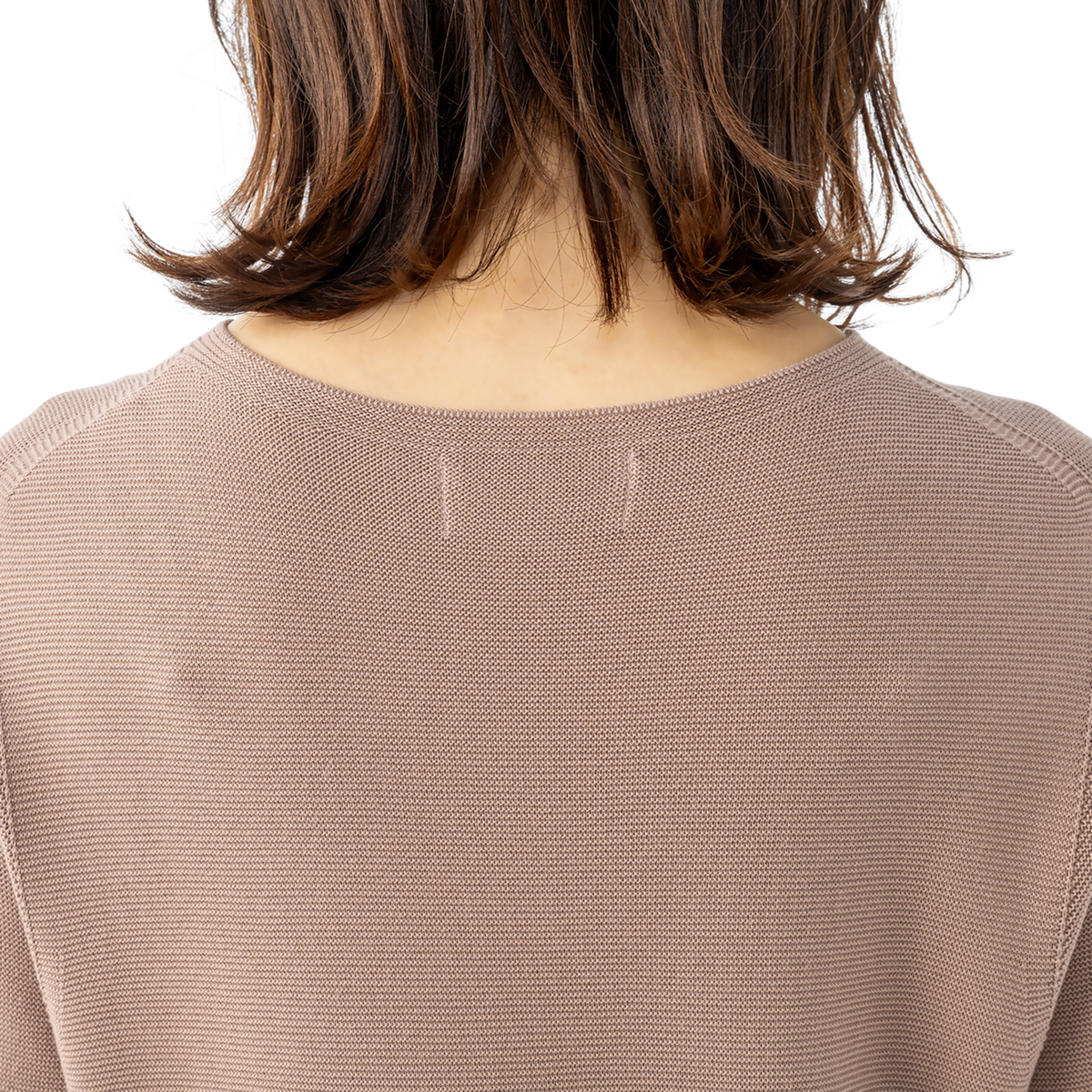 ホールガーメント機で一着丸ごと編み上げているため、無理な突っ張りがなく、身体に自然に寄り添う着心地が特徴。身長に合わせて、ショート、ロングの2種類の着丈からお選びいただけます