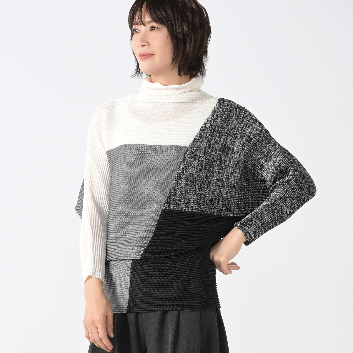 No. 721383 SPECCHIO シャトルプリーツフリーサイズ2WAYドルマンチュニック