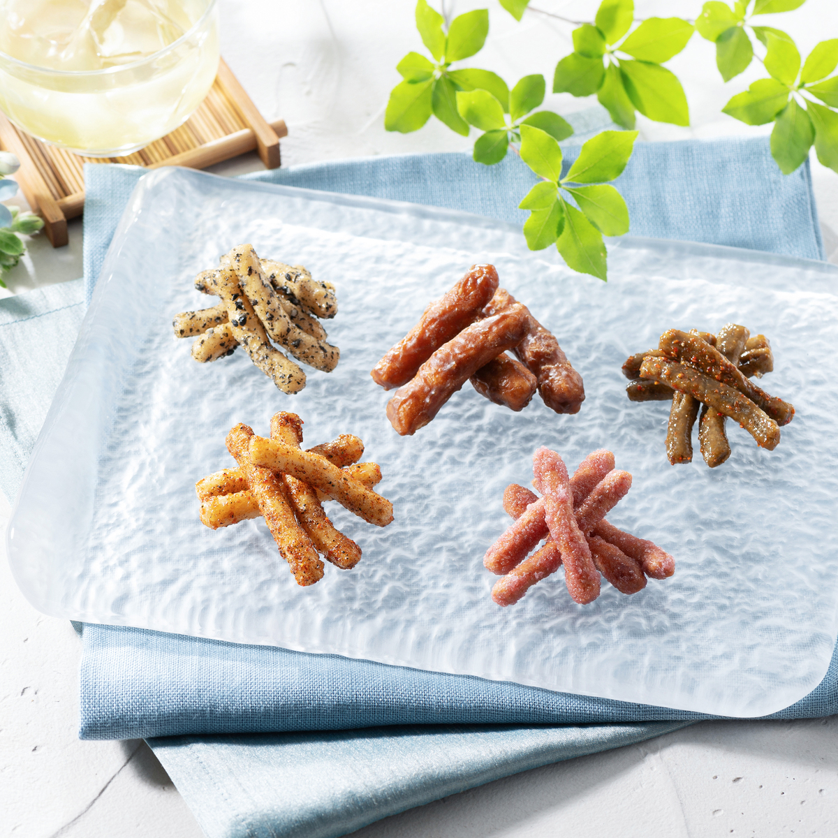 日本橋錦豊琳の代表作と言えるかりんとう。ごぼうの風味をしっかりと残し、七味唐辛子がアクセントに。お茶うけにも、お酒のおつまみにもぴったりです