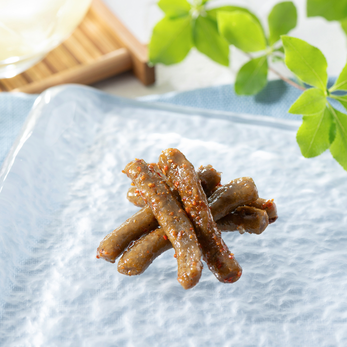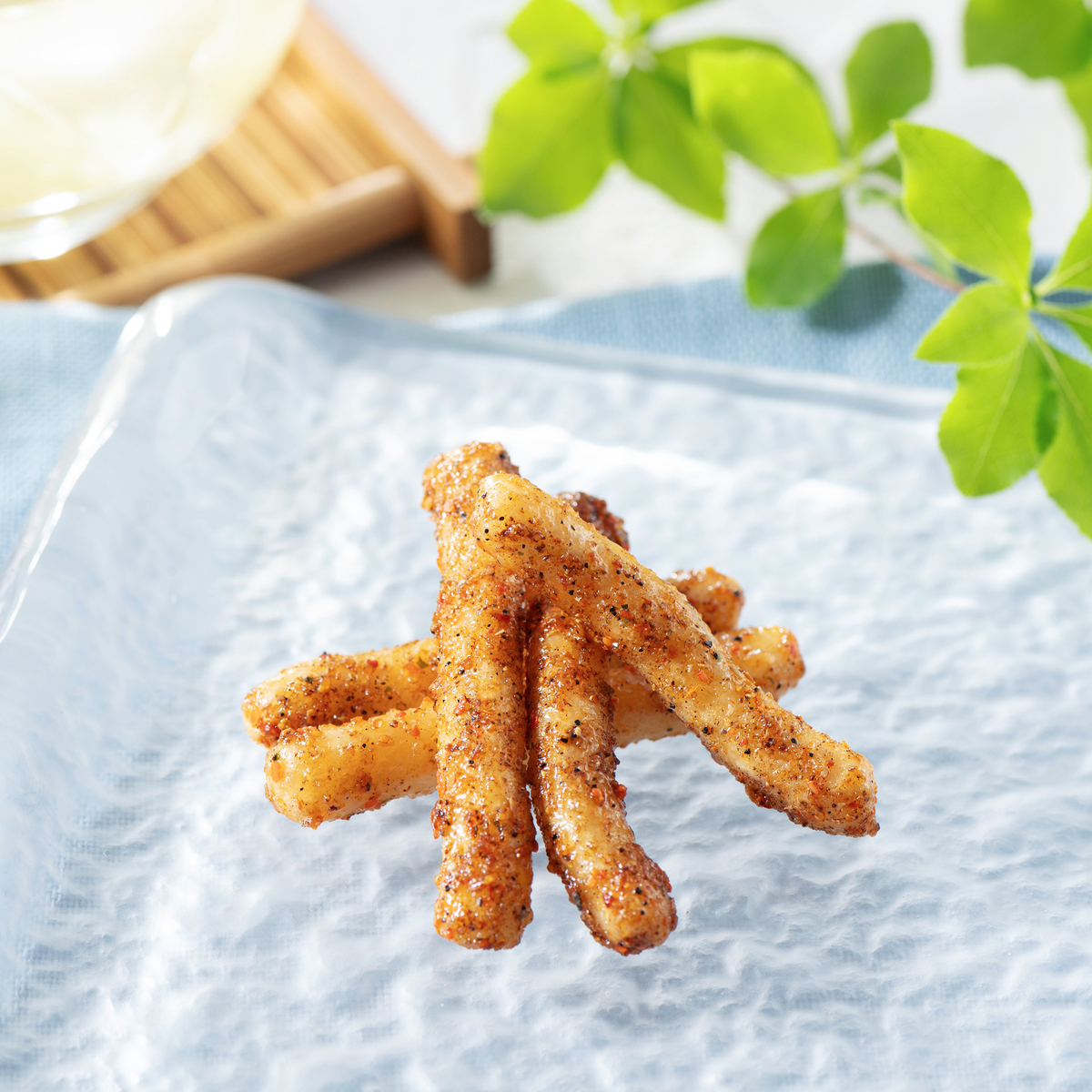 七味唐辛子と山椒のダブルの辛さが刺激的な大人の味。お酒のおつまみとしてもおすすめです