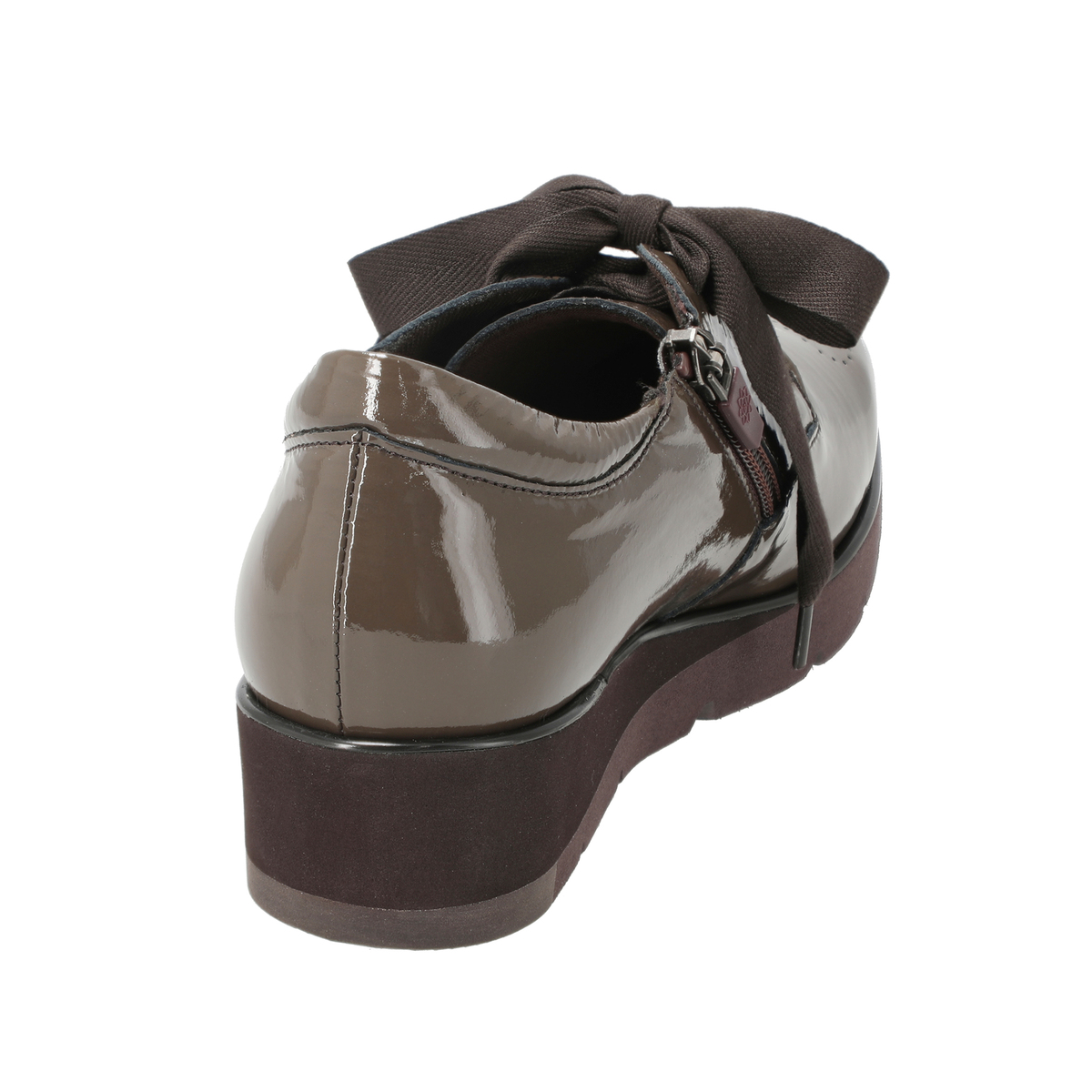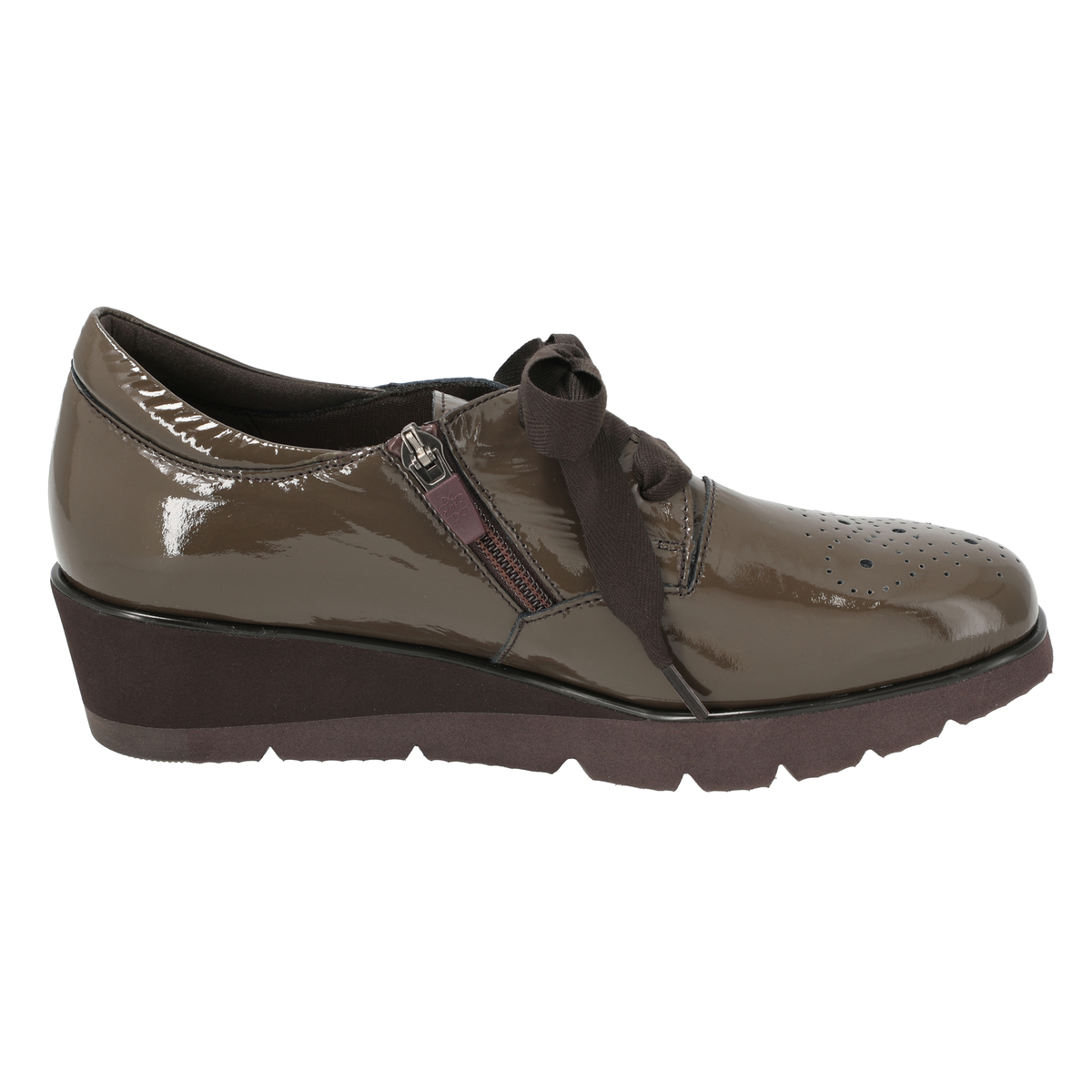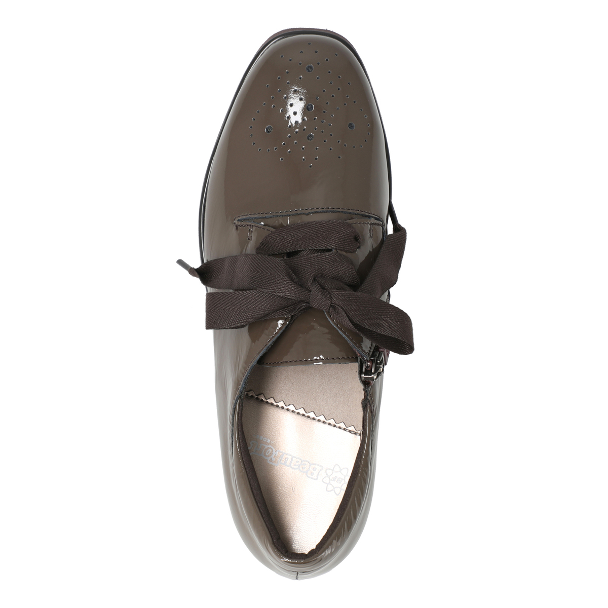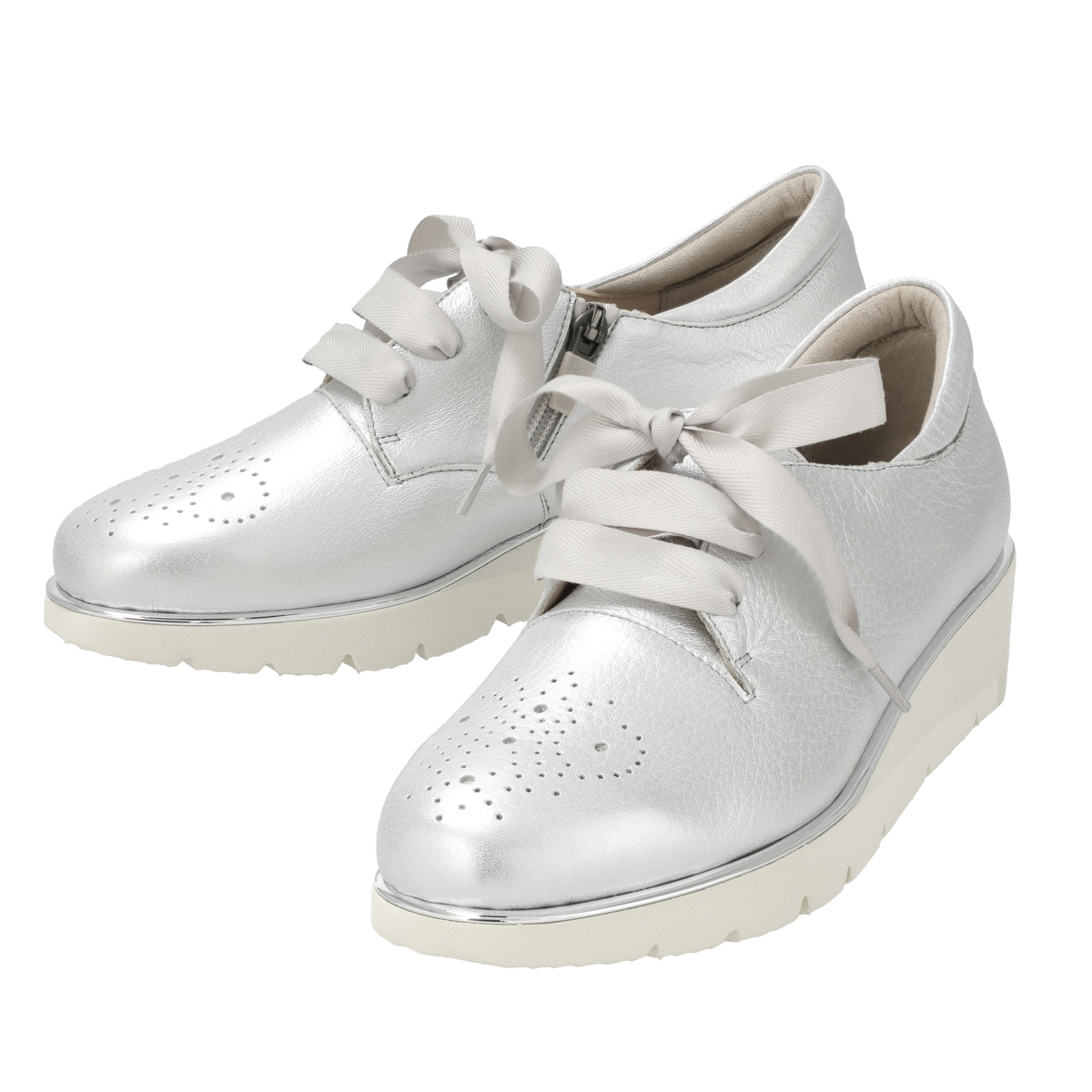 つま先のメダリオン飾りがトラッドな雰囲気を醸し出す厚底牛革ブローグシューズ。太めのリボン紐を通すことでトラッドな靴にフェミニンさをプラス。シューレースを解かずに脱ぎ履きができるよう、内側にファスナーを付けています