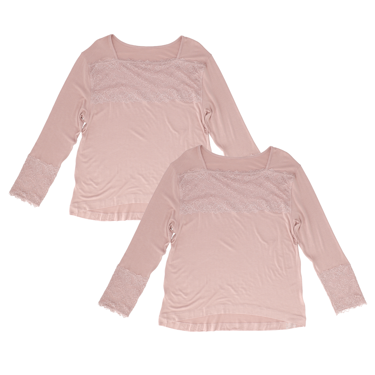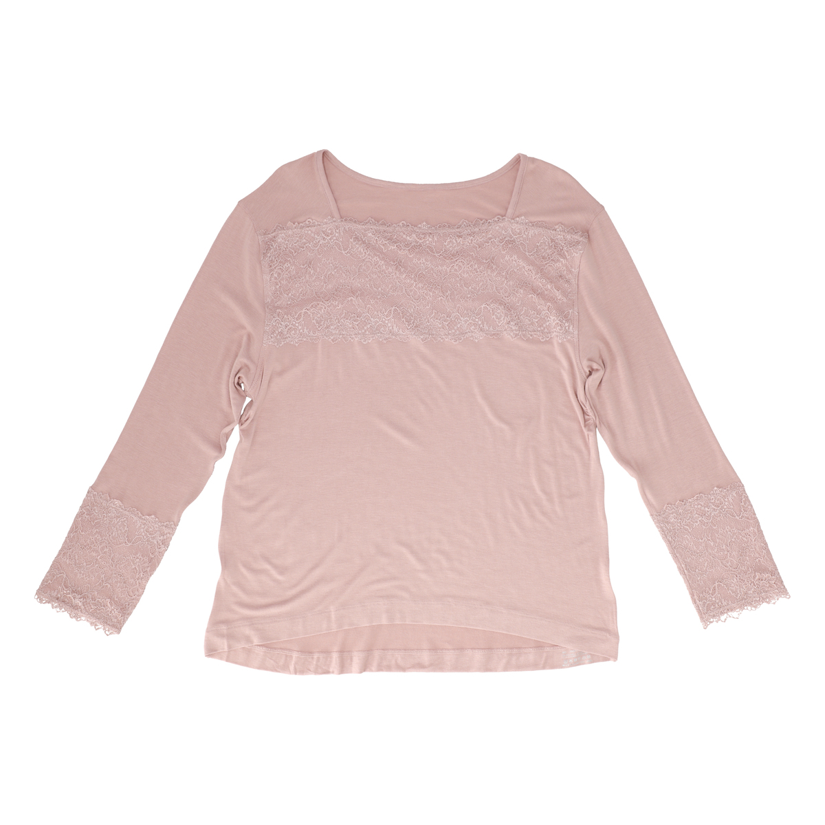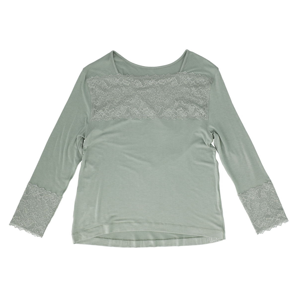 胸元などにストレッチレースを配して華やかに。ストレッチレースで、袖口もスムーズに腕まくりが可能です。レースには柔軟加工を施し、レースの風合いが柔らかくなることで本体のカットソー生地の伸縮についてくるので、着用感を良く感じていただけます