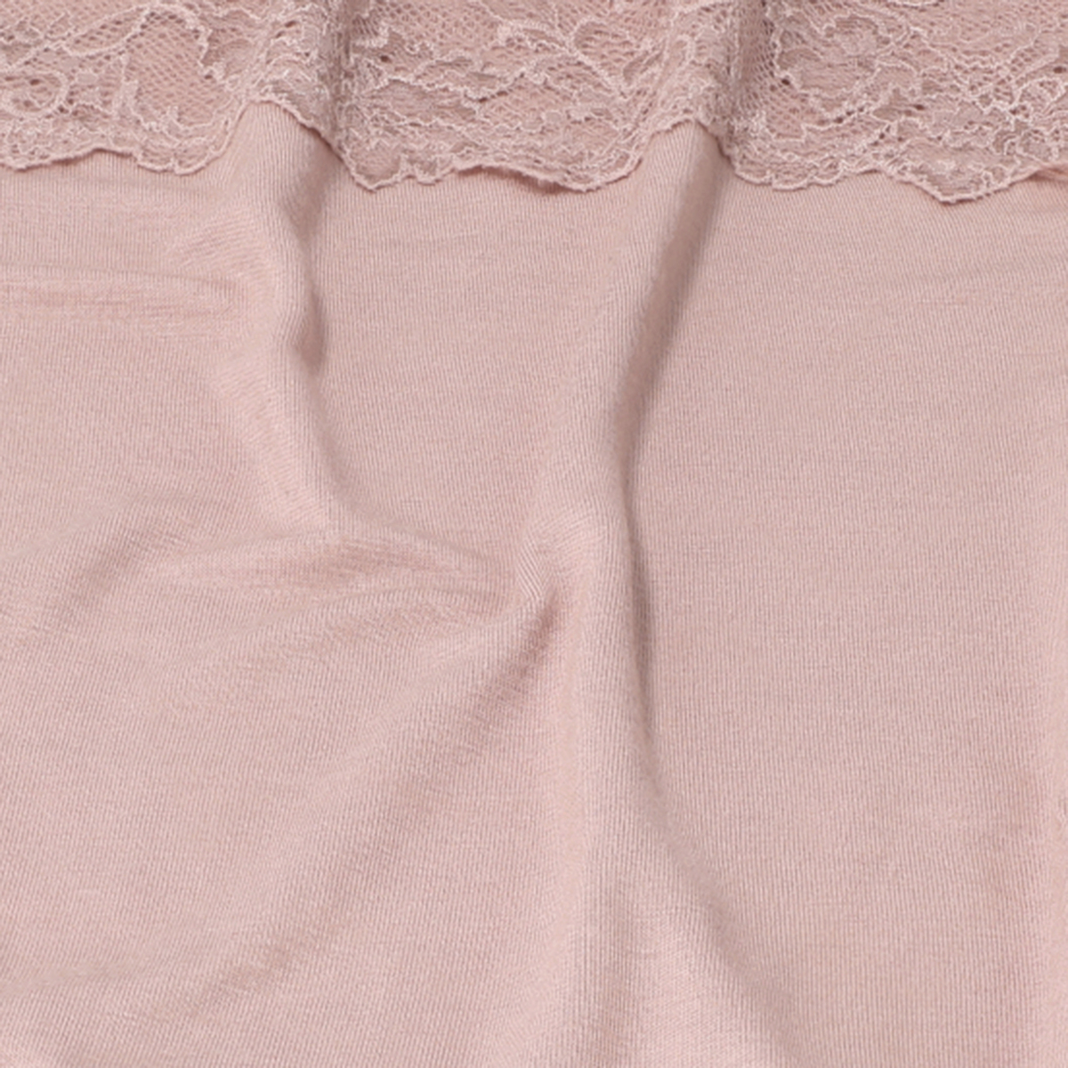 レース裏側の端までなめらかな身生地を裏打ちしているので、レースが直接お肌にあたらない仕様です。アウターとの擦れなどで発生するピリングを未加工品よりも軽減してくれる、抗ピリング加工も施しています