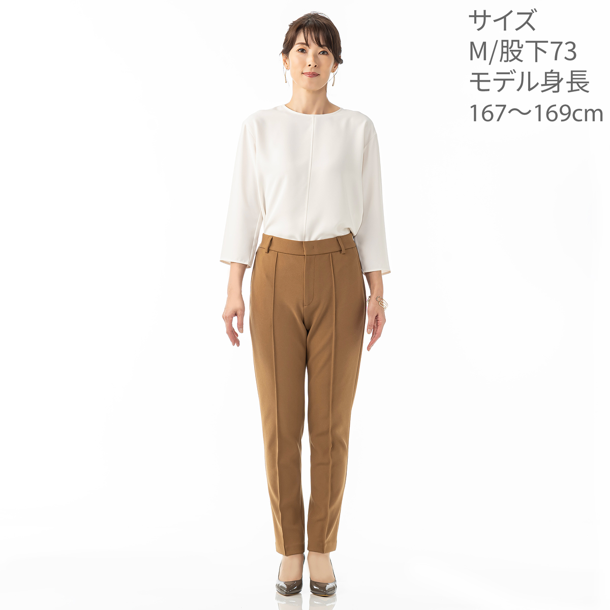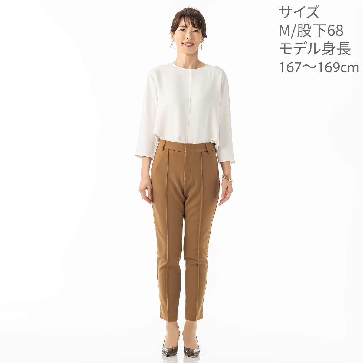 シルエットが綺麗で、足が長くみえます。 素材的にも弾力性、落ち感もあり履き心地が良いのでストレスなく履く事が出来ました。 以前スポンジパンツも購入しましたが、私にはパターンが合うため今後もリピしたいと思います。 自宅で洗濯しても型崩れしないので助かります。