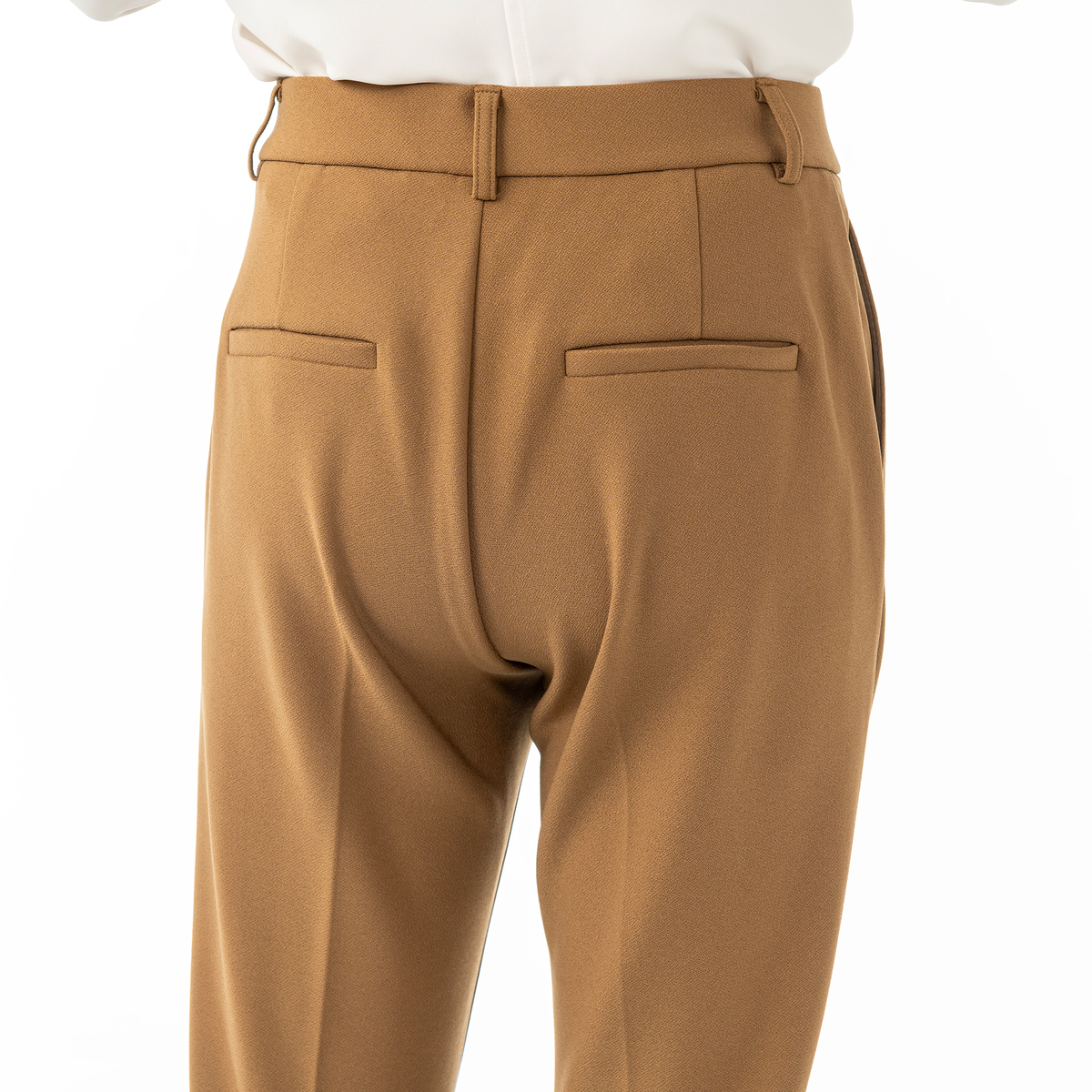 立体的なパターンテクニックを駆使したモデリストの設計を基に、パンツ専門工場で作成して完成度を高めたスリムパンツ。ウエストはゴム仕様でしなやかにフィットしながら、ファスナーと前カン付きの本前開き仕様です
