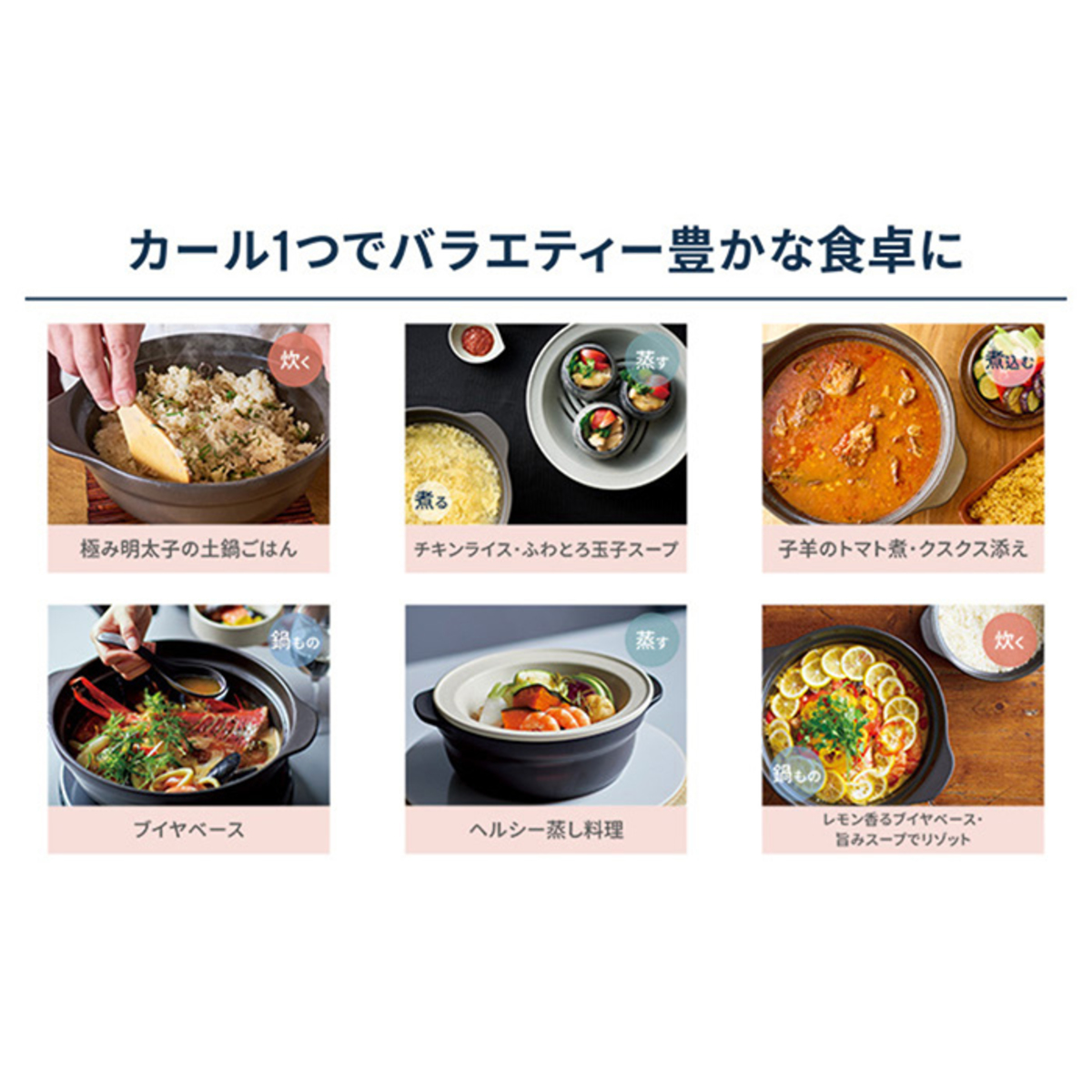 *3)対応熱源(出力によっては調理できない場合あり):IH200V、IH100V、直火、電子レンジ、オーブンレンジ、ハロゲンヒーター(蒸し皿は対象外)