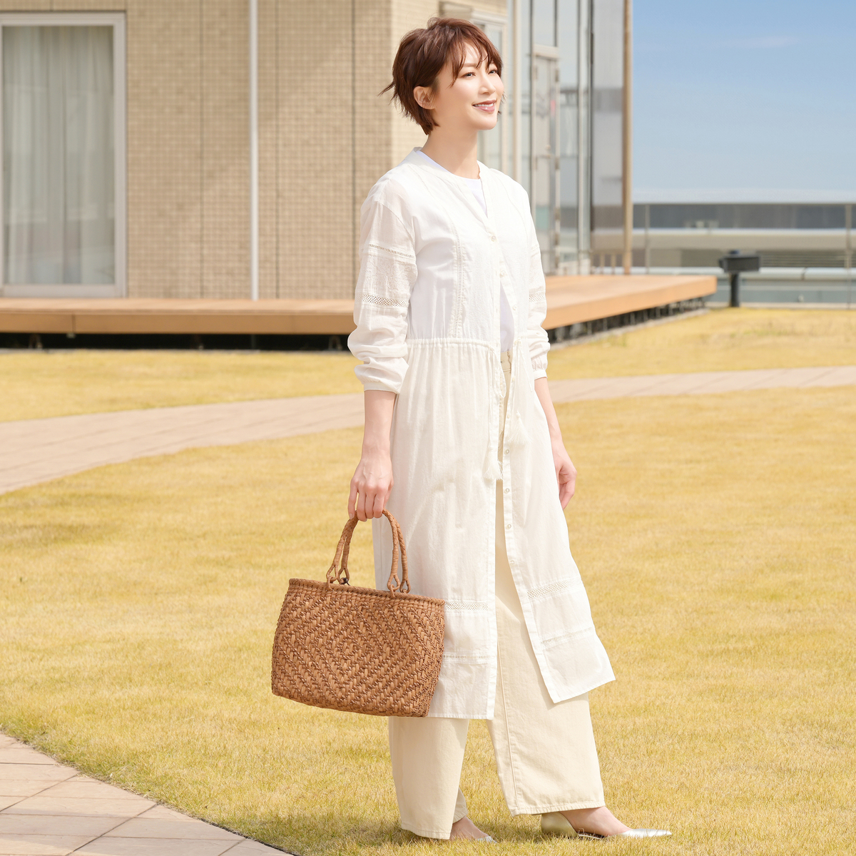 巾着タイプの内布付きで中身が見えにくく、内側に折り込めば、巾着を閉じることなく使用できます。持ち手が固定されていないので、持ちやすいのも魅力。デイリーコーデからカジュアルエレガントなシーンまで幅広く活躍し、浴衣など和装にもおすすめです