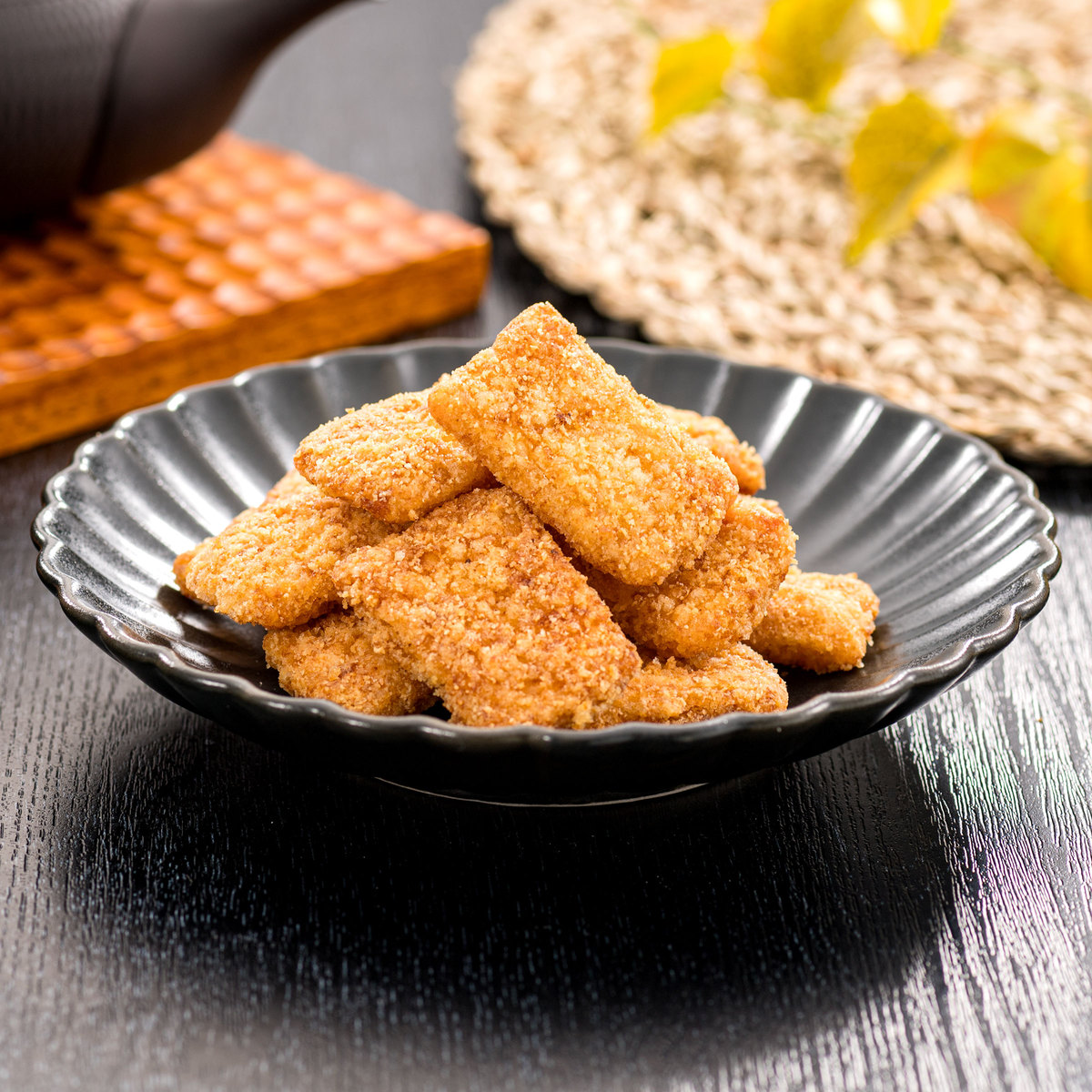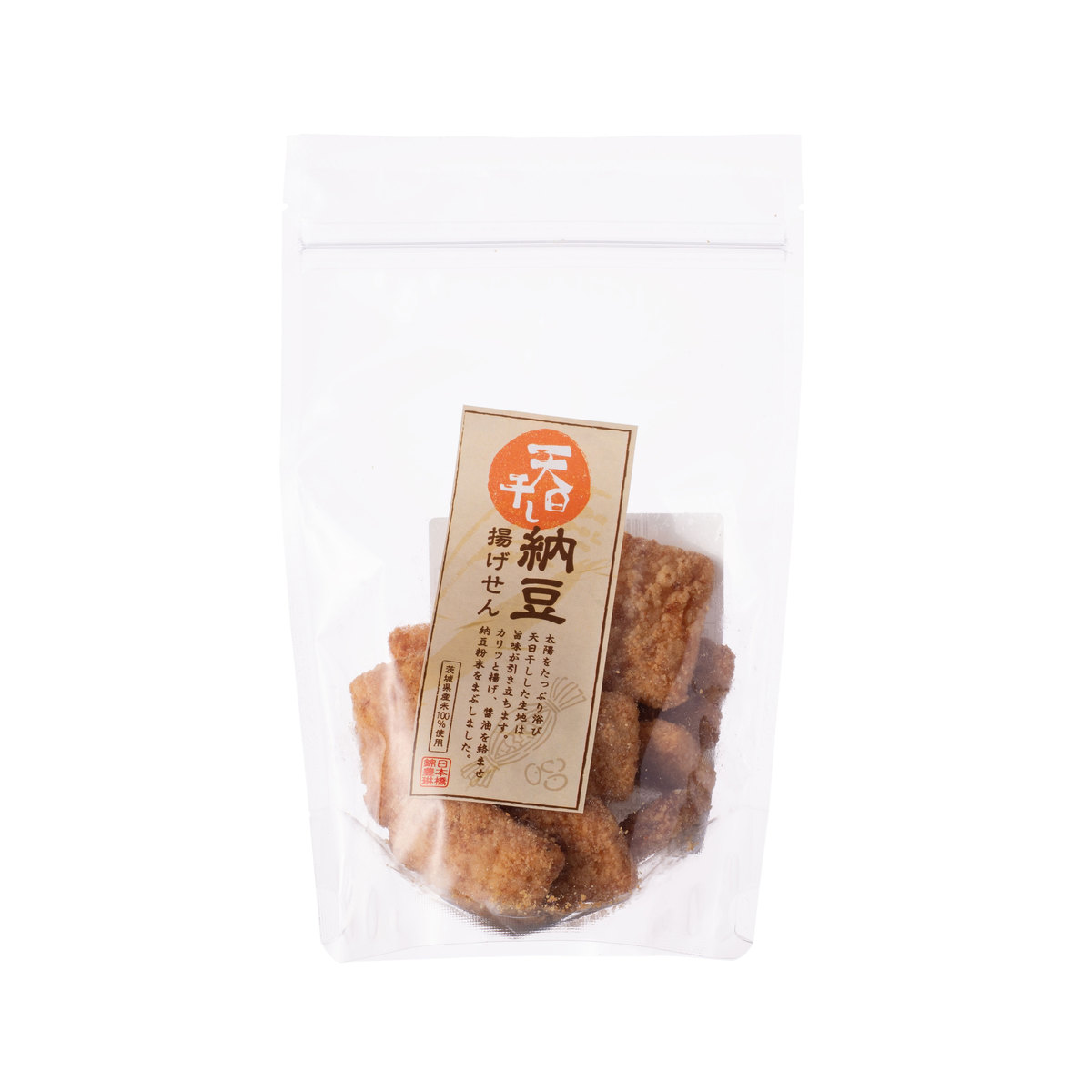 原料のうるち米は、自然豊かな茨城県坂東市で生産されたコシヒカリを100%使用。油で揚げた生地は、170年使用の杉桶で約1年間熟成させた天然醸造の醤油で味付け。最後に国産大豆100%を使用した納豆を粉末にし、旨味のある揚げせんべいに仕上げています