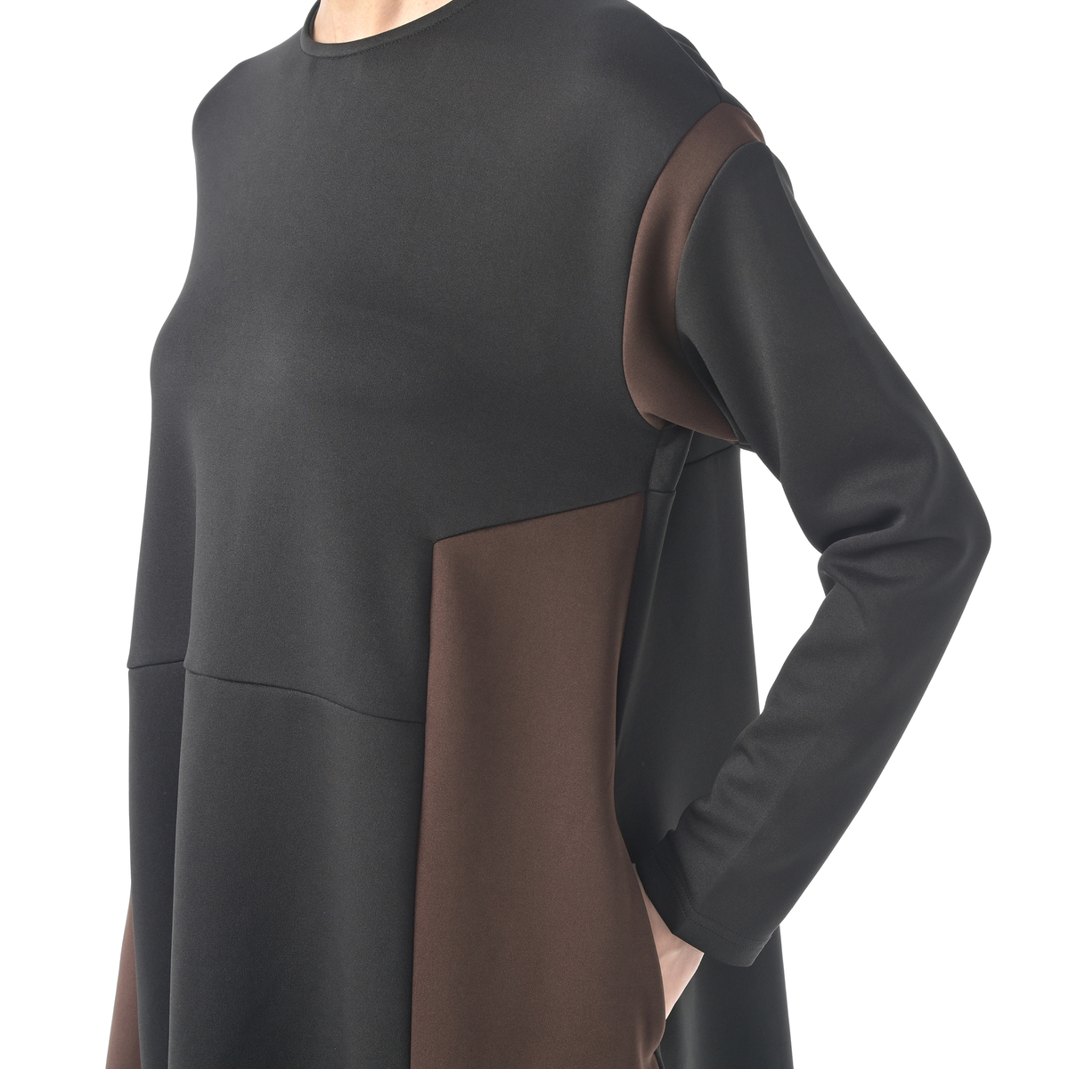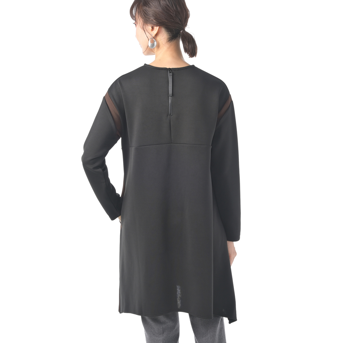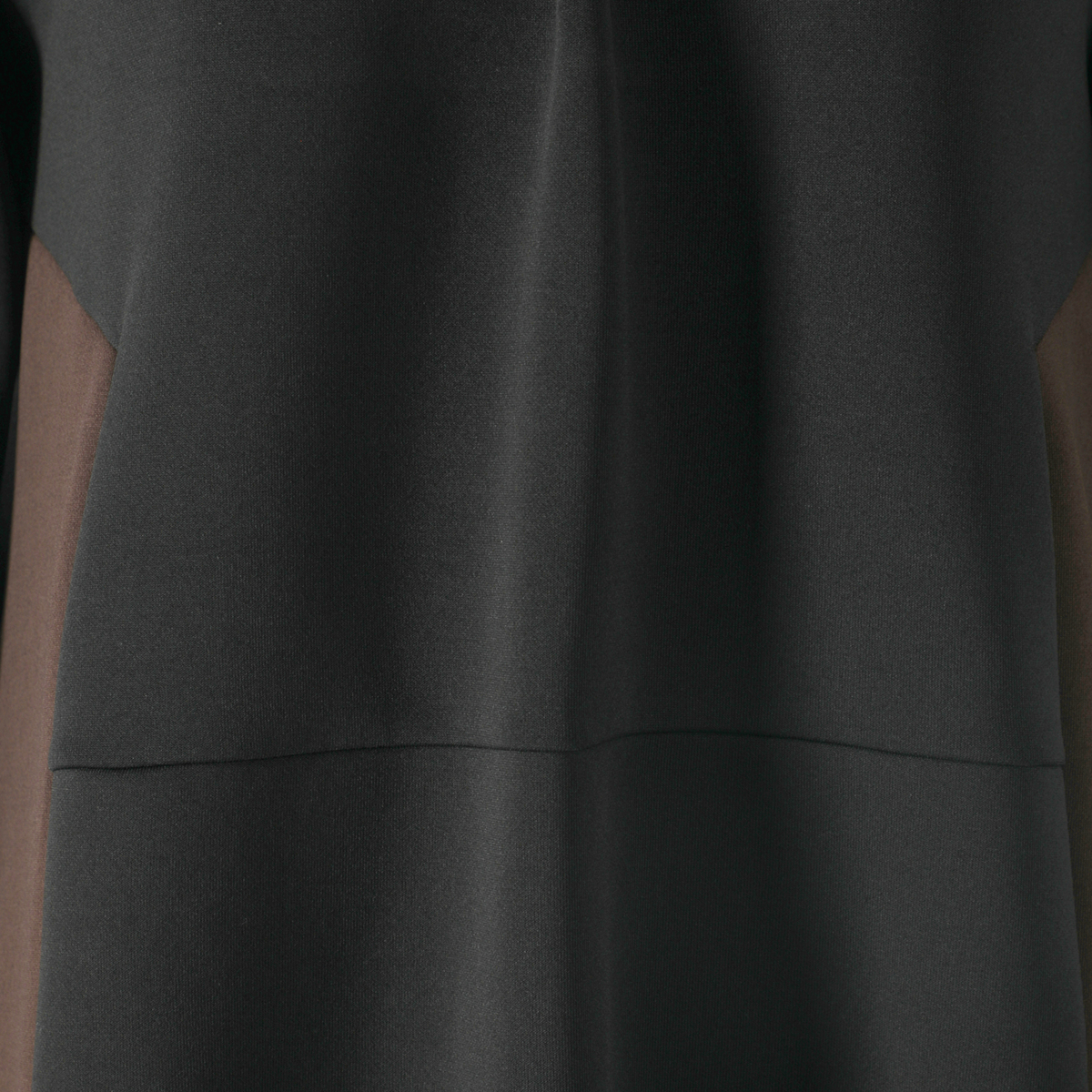 アームホールと両脇を配色で切り替えたチュニックワンピース。ブランドらしいデザイン性を感じる大胆な切替で、無地ながらも存在感のあるアイテムです