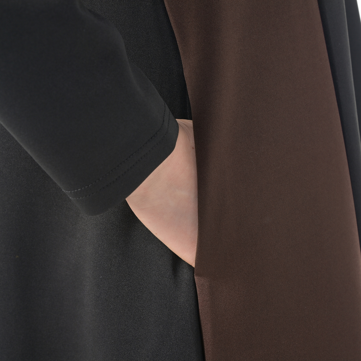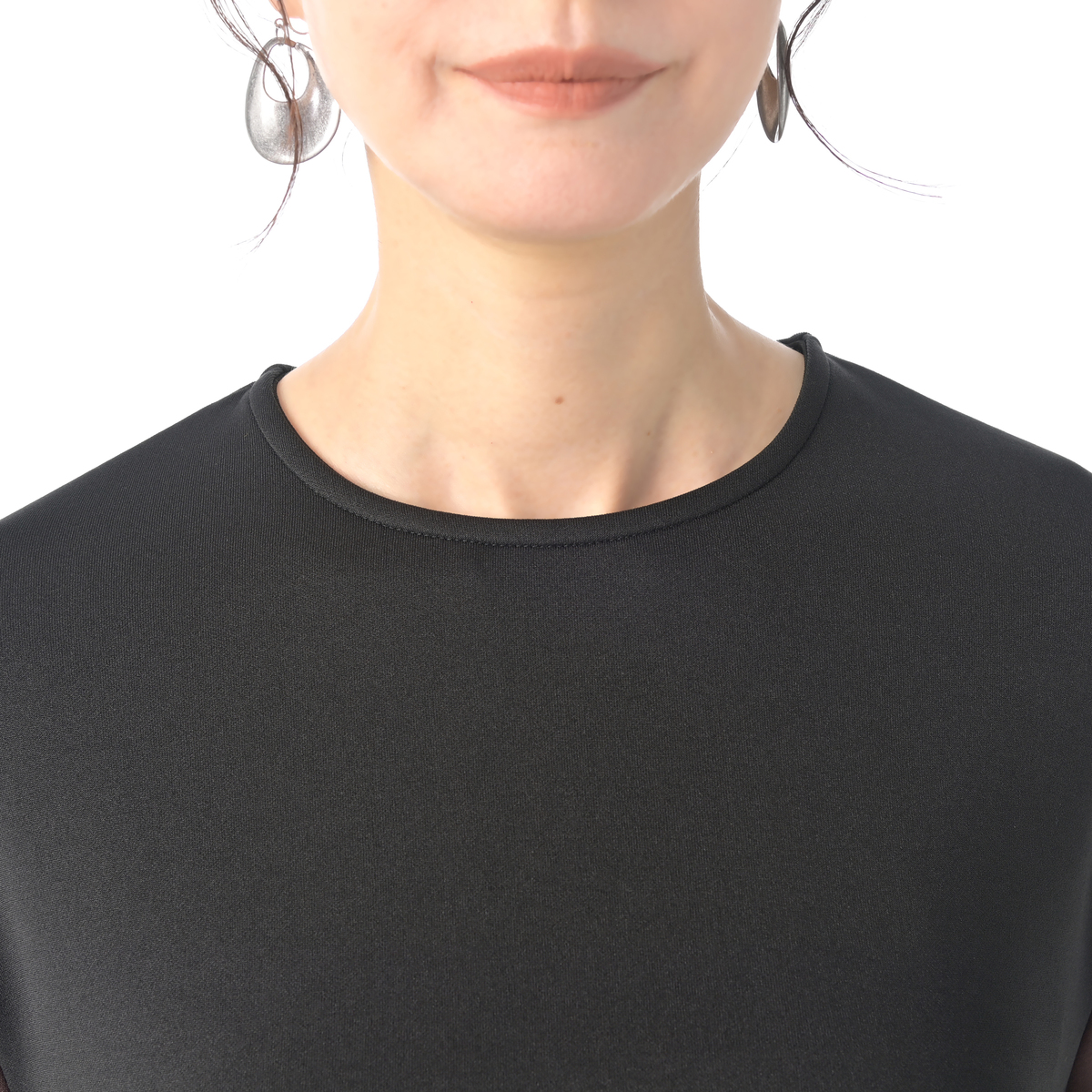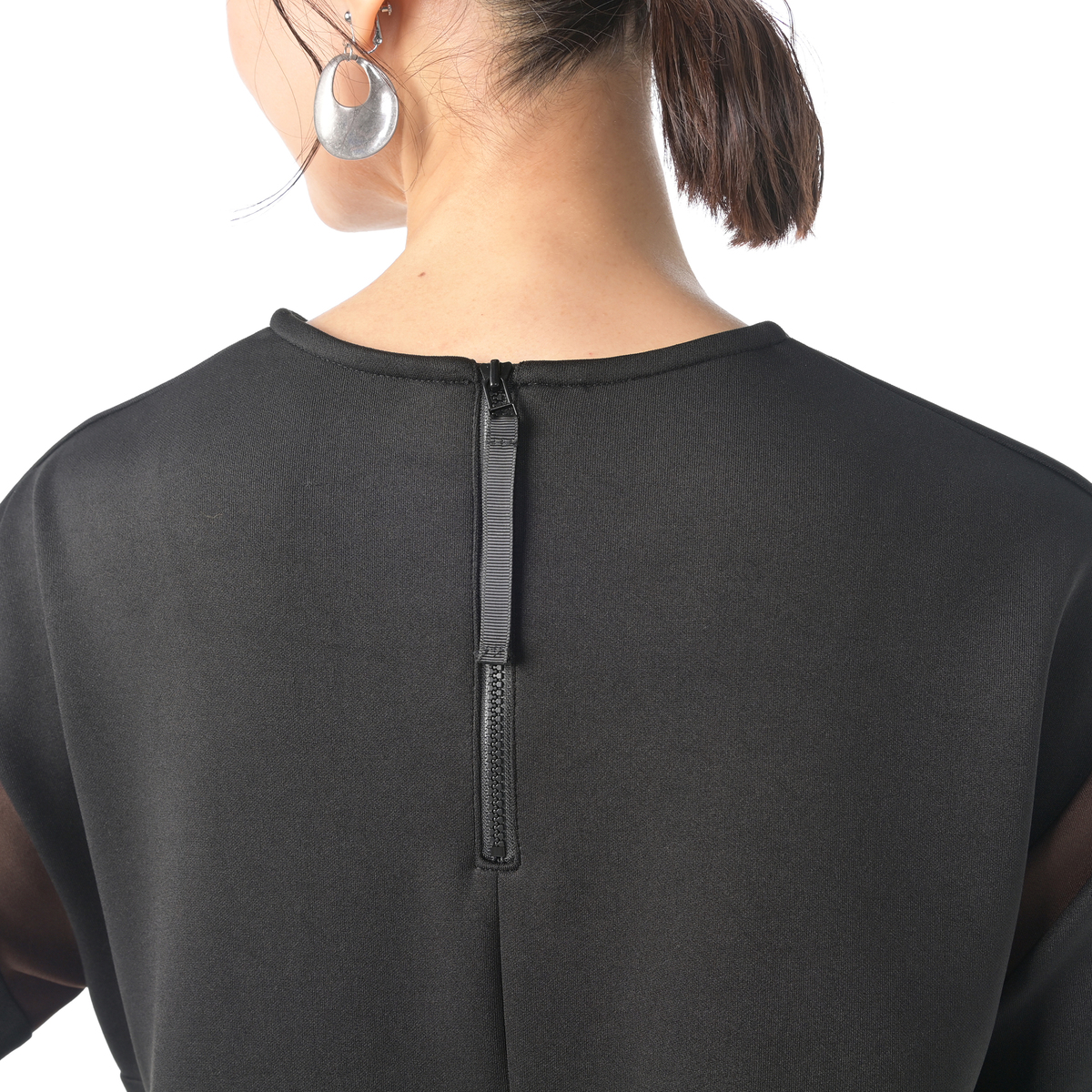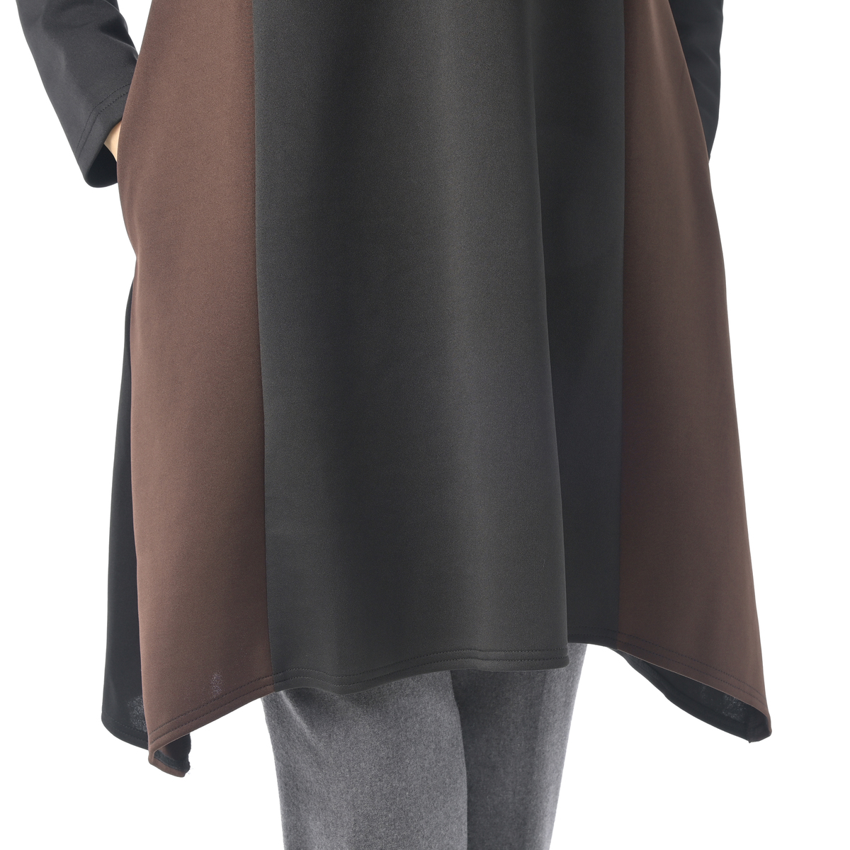 アームホールと両脇を配色で切り替えたチュニックワンピース。ブランドらしいデザイン性を感じる大胆な切替で、無地ながらも存在感のあるアイテムです