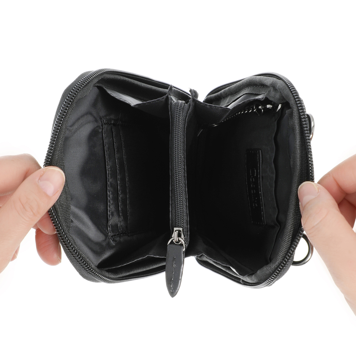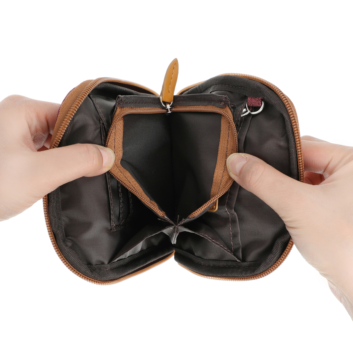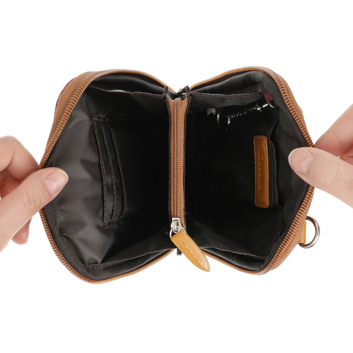 お出かけ時に便利なスマホウォレットショルダーです。深底ポケット、小銭入れ、カードポケットなど、整理しやすい9つの機能的なポケットを備えています。さらにポーチの中には、取り外しできるキーリングも付いています
